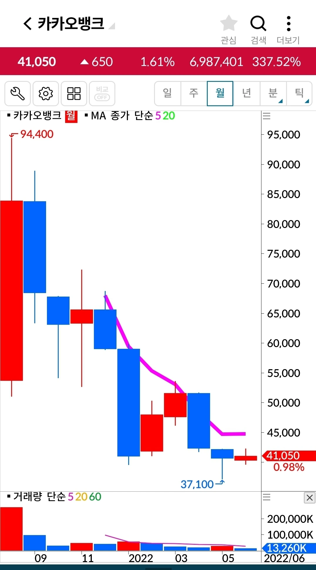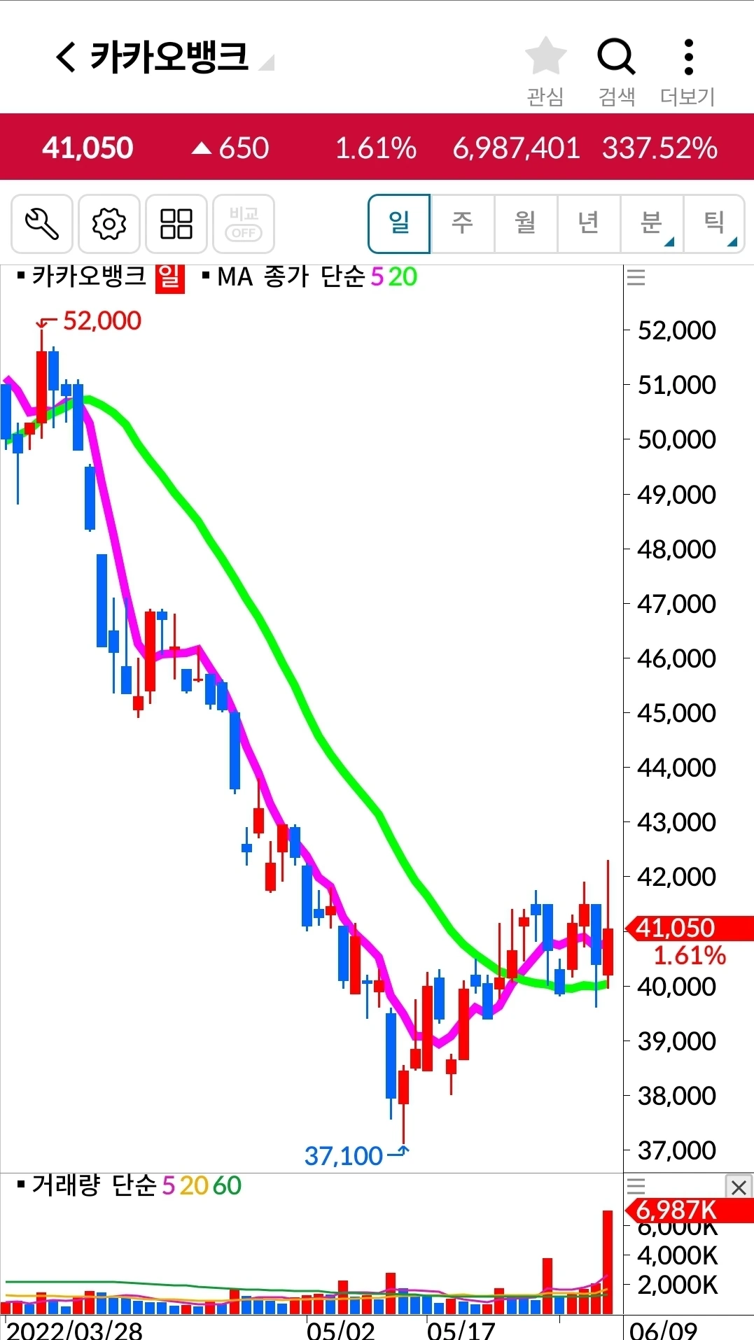오홋 전일 고점을 빵 뚫는 양봉. 기대해보자