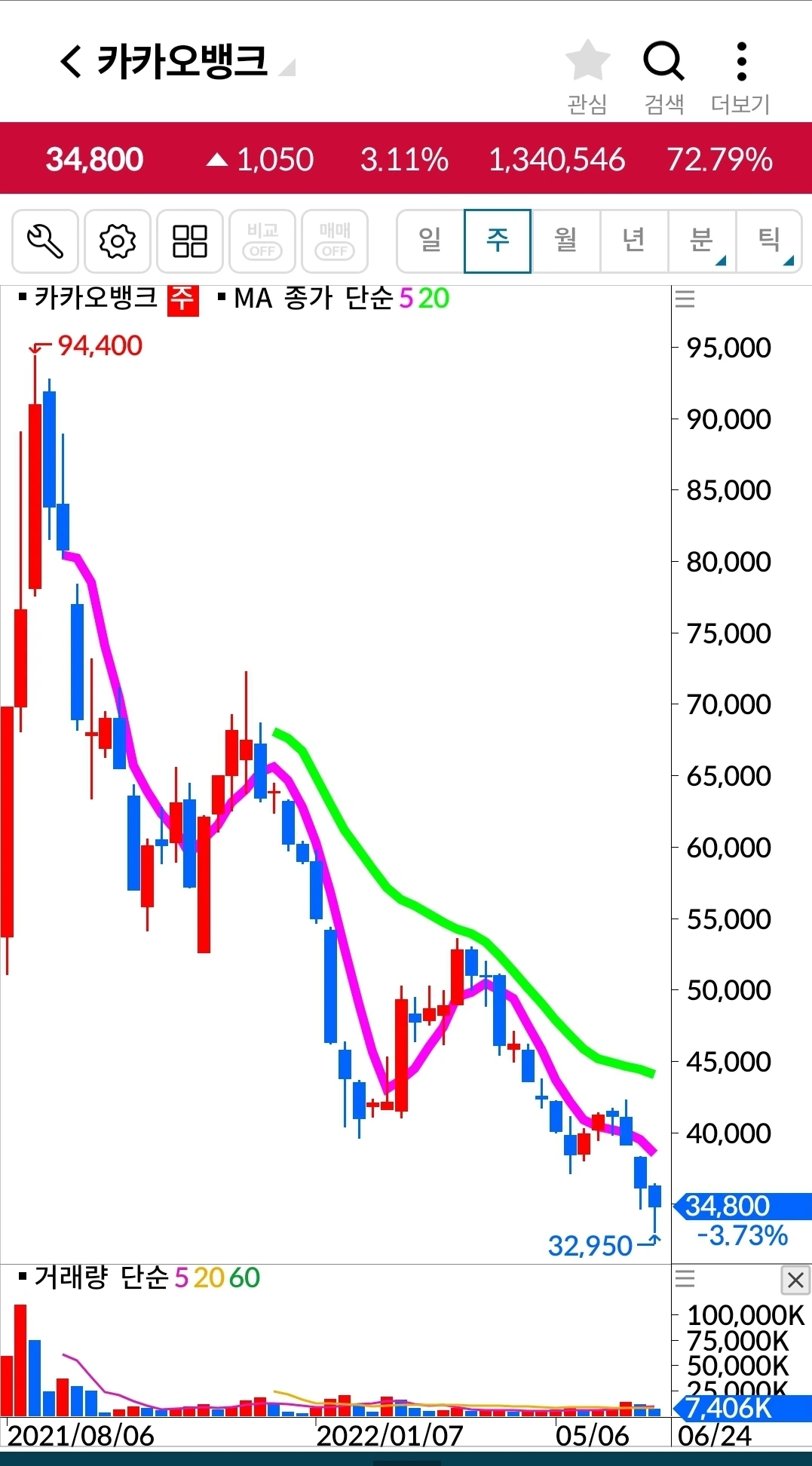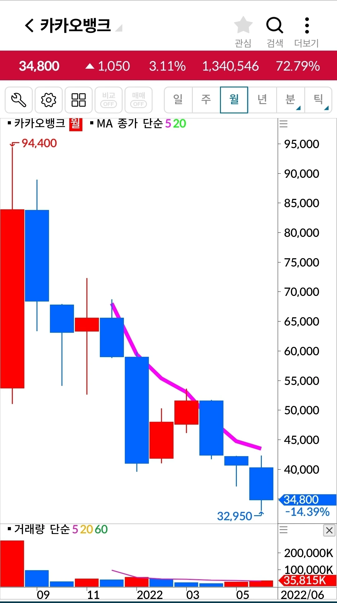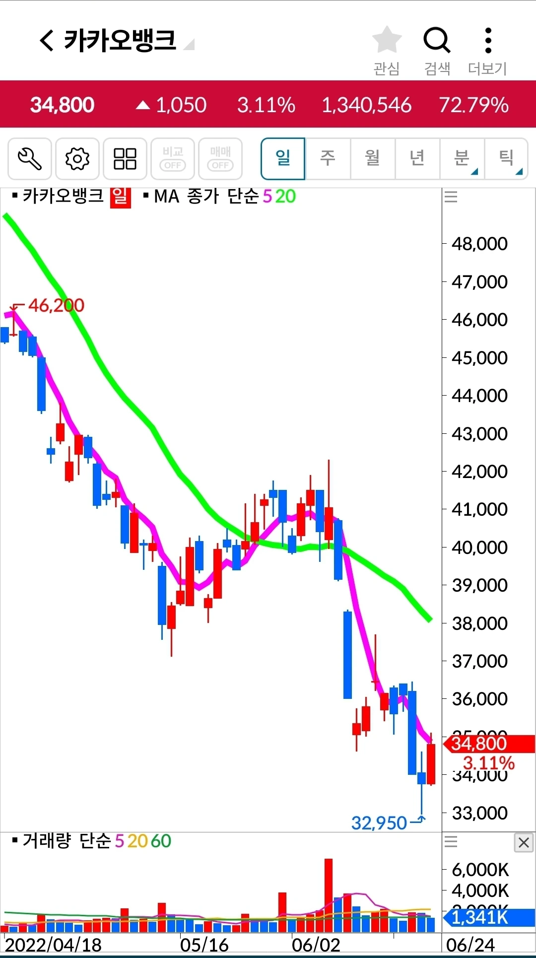 빵! 올라서 이제부터 상승하지 않을까 싶은 그림이다. 파이팅!