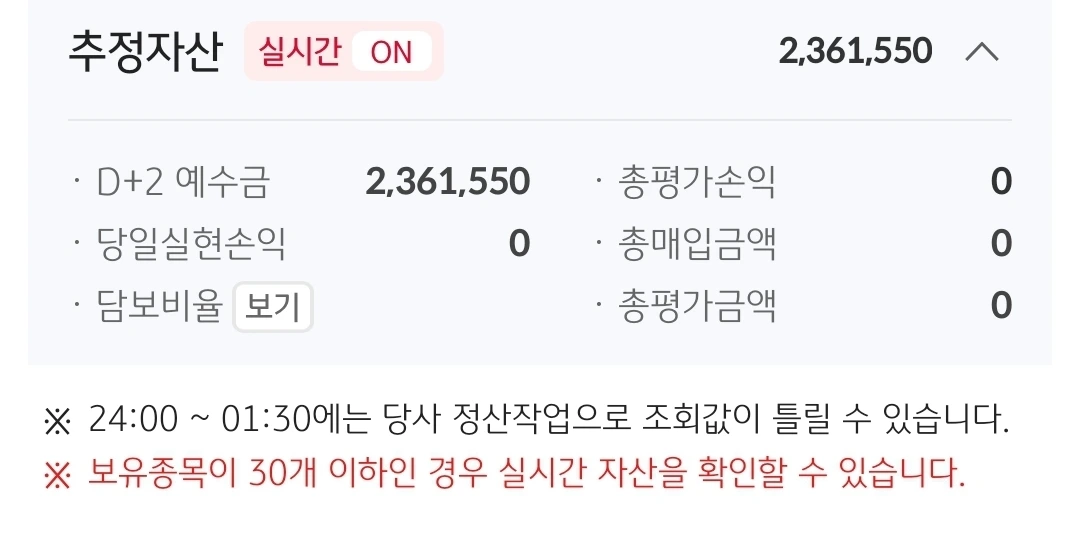 주식선물 추정자산. 236만 원. 이게 왜 이렇게 나오는지 알 수 없으나 현물 계좌의 43만 원과 나의 비자금 200만 원 해서 243만 원이 나의 선물계좌 원금이다. 그렇게 보았을 때 7만 원의 손실이다.