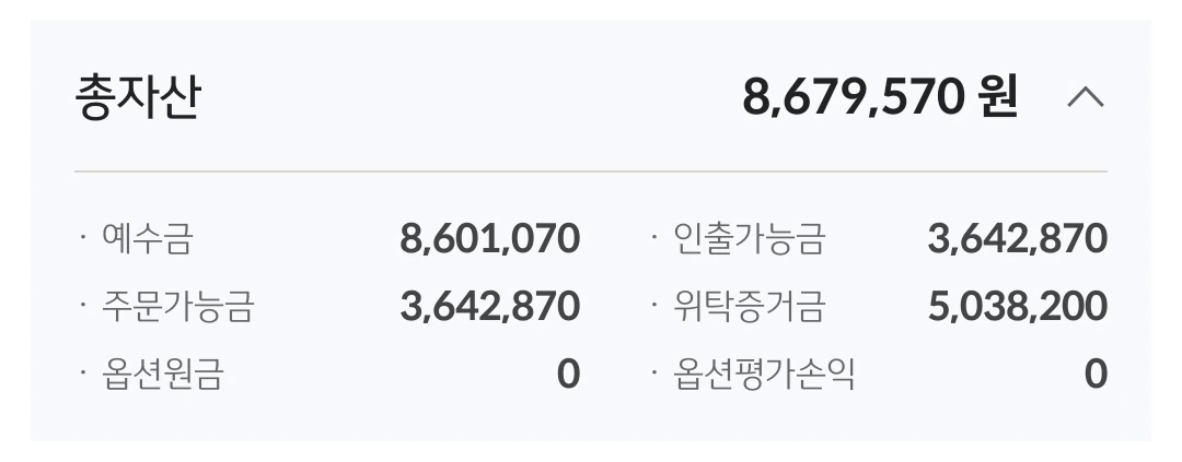 주식선물 총자산. 867만 원. 주식 대용을 합한 값인가 보다. 모르니까 그냥 매번 보기로 한다.