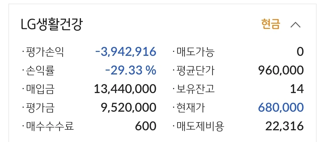 LG생활건강. 394만 원 손실 중.
