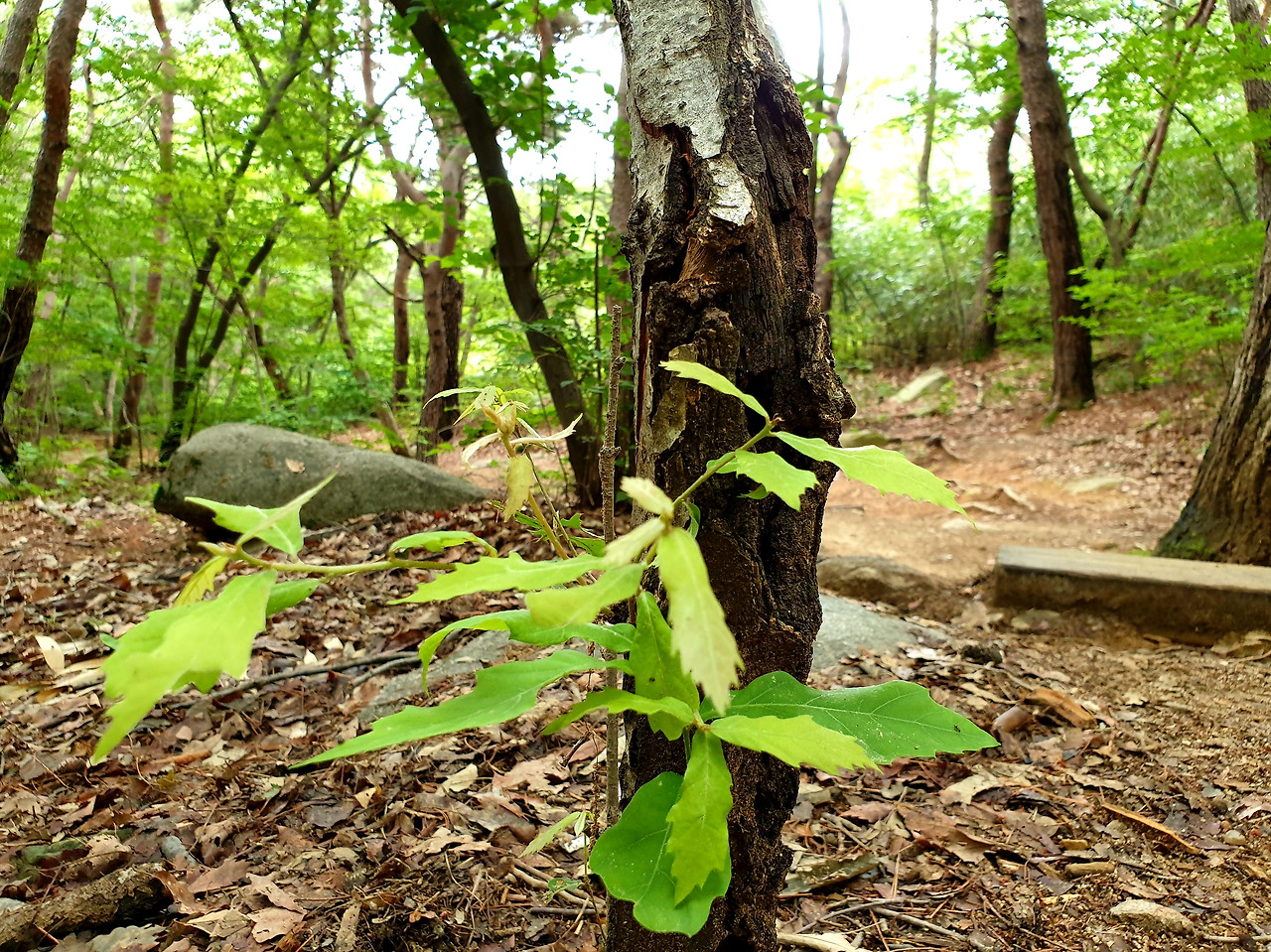 등산은 골프와는 또 다른 맛이다. 푸르름이 우거진 산속을 오르고 오르고 또 오르고. 아무 생각 없이 발 끝만을 보며 힘을 잘 조절한다. 정상까지 가야 하니까. 커다란 바위가 나타나면 앉아 가져온 먹거리를 하나씩 풀어 먹으며 먹다 쉬다 가다를 반복한다. 푸아~ 숨도 크게 내쉰다. 요가에서 배운 복식호흡을 살짝 해본다. 흐읍~ 숨을 들이마실 때 똥배를 앞으로 불룩하게 내밀고, 흐욱~ 숨을 내쉴 때 똥배가 찰싹 등에 붙도록 들이밀면서 열심히 올라간다. 정상까지 힘들게 그러나 즐겁게 올라갔다 거의 다 내려올 즈음일 게다.