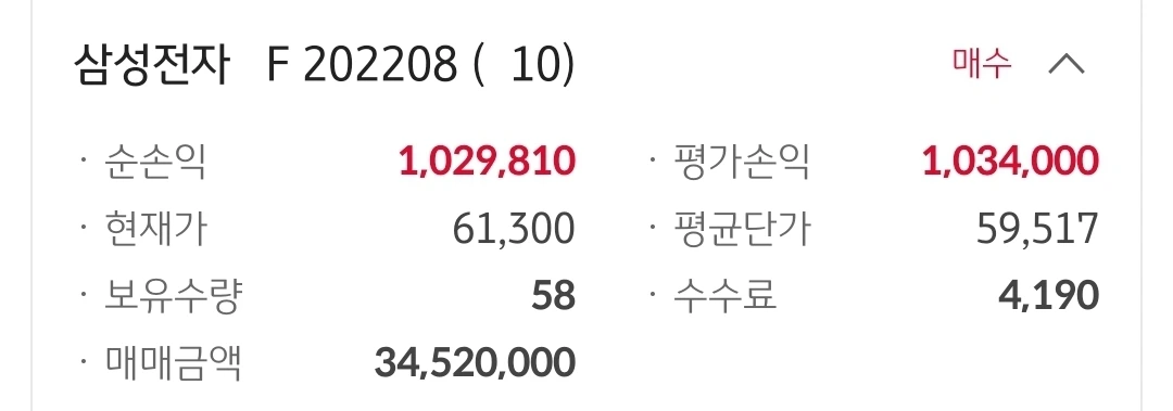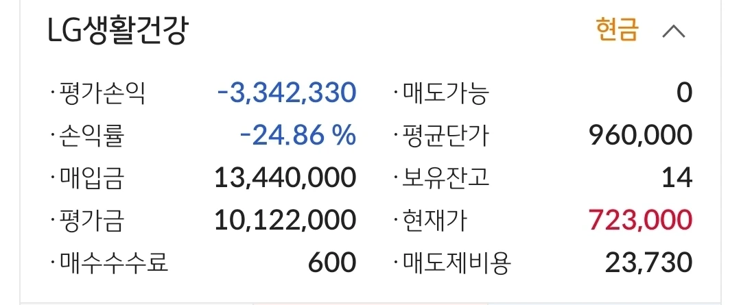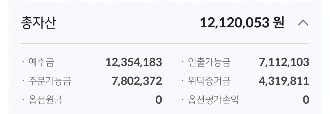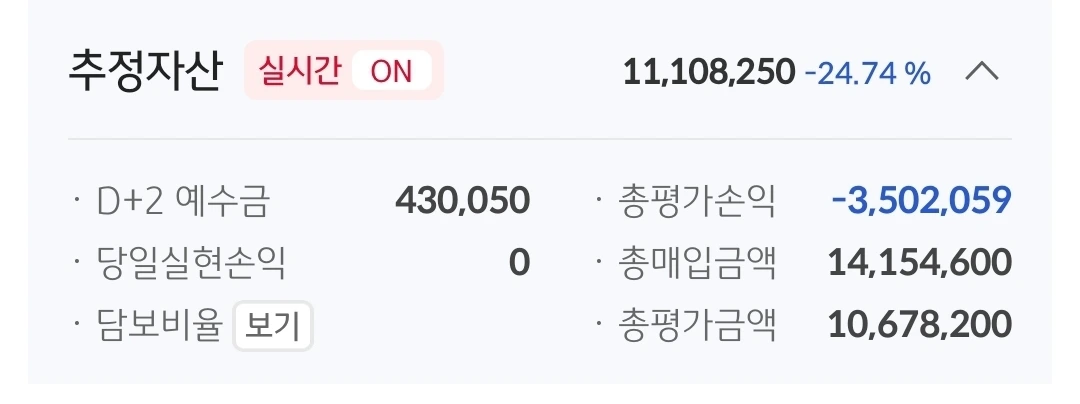 현물 자산. 1110만 원. 890만 원 손실 중.
