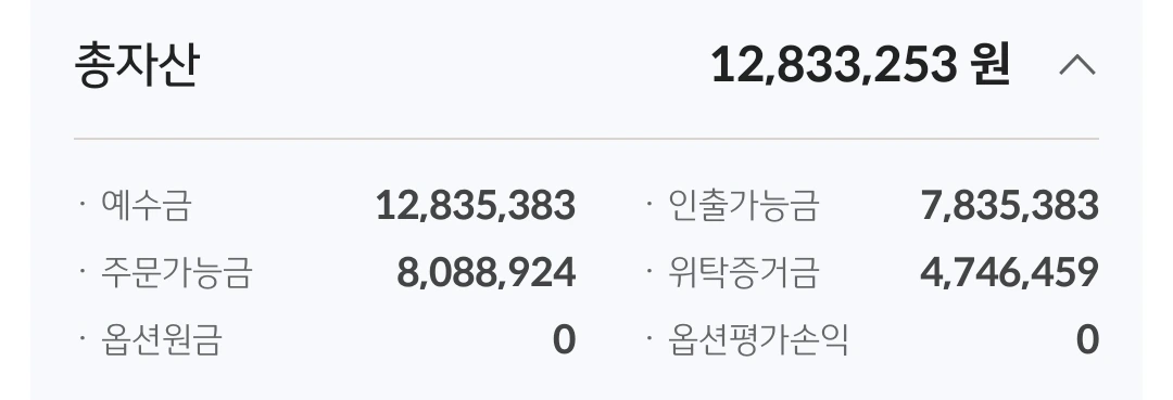 선물계좌 총자산. 1283만 원. 489만 원 수익 중.