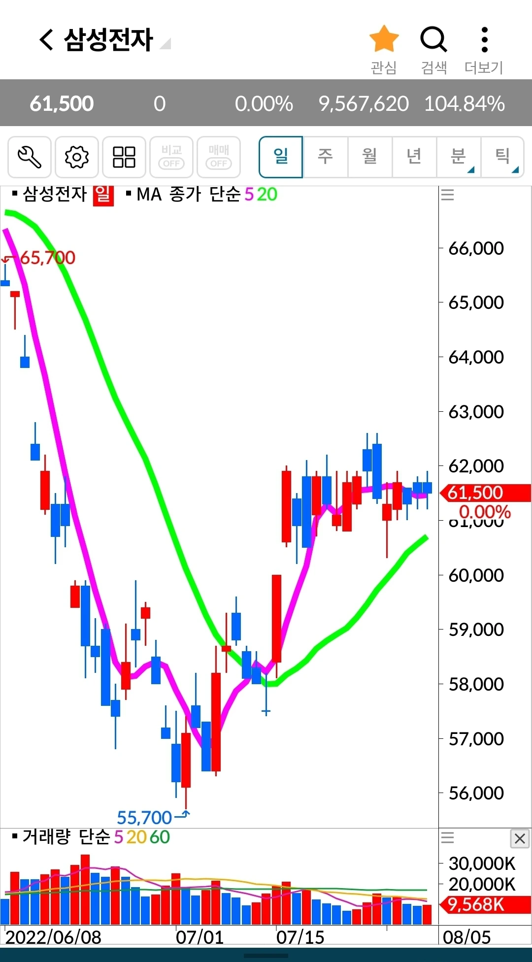 5일 선이 20일 선 위에서 잘 올라가고 있으므로 내가 할 일은 없다.