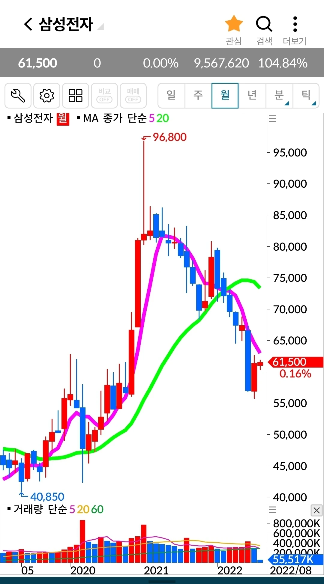이것 역시 5일 선이 20일 선 위에 있으니까 내가 할 일은 아무것도 없음. 난 요것만 할 거니까. '난 아무것도 몰라요~ 5일 선이 20일 선 아래로 내려가면 매도할 뿐야요~'