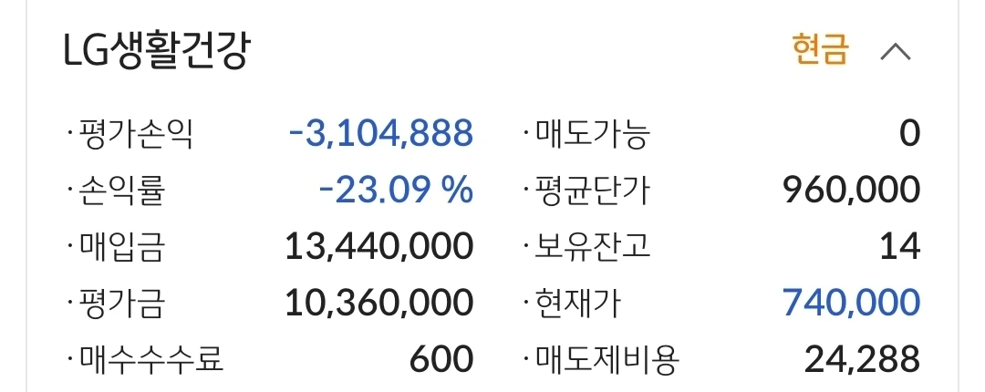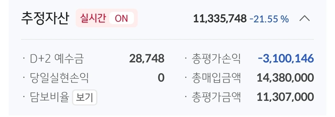 현물 계좌 총자산. 1133만 원. 867만 원 손실 중.