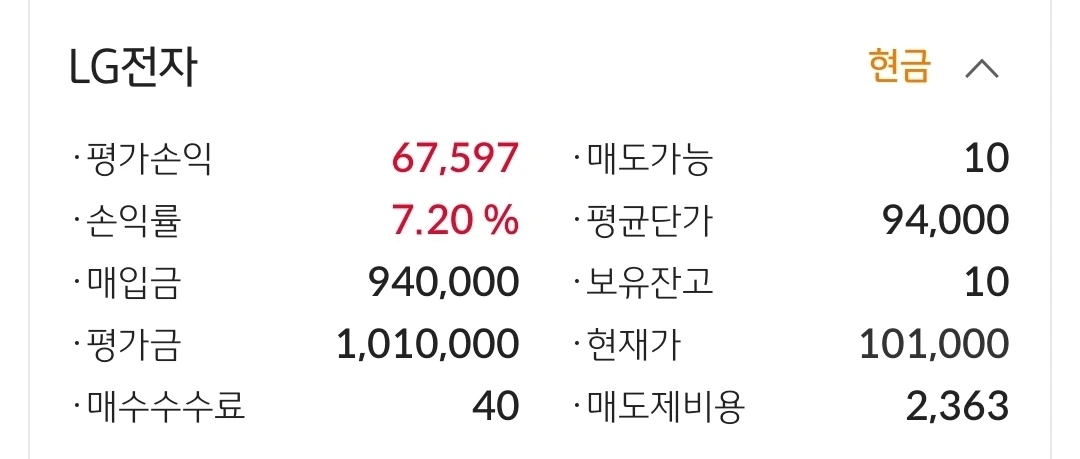 엘지전자. 6만 원 수익 중.
