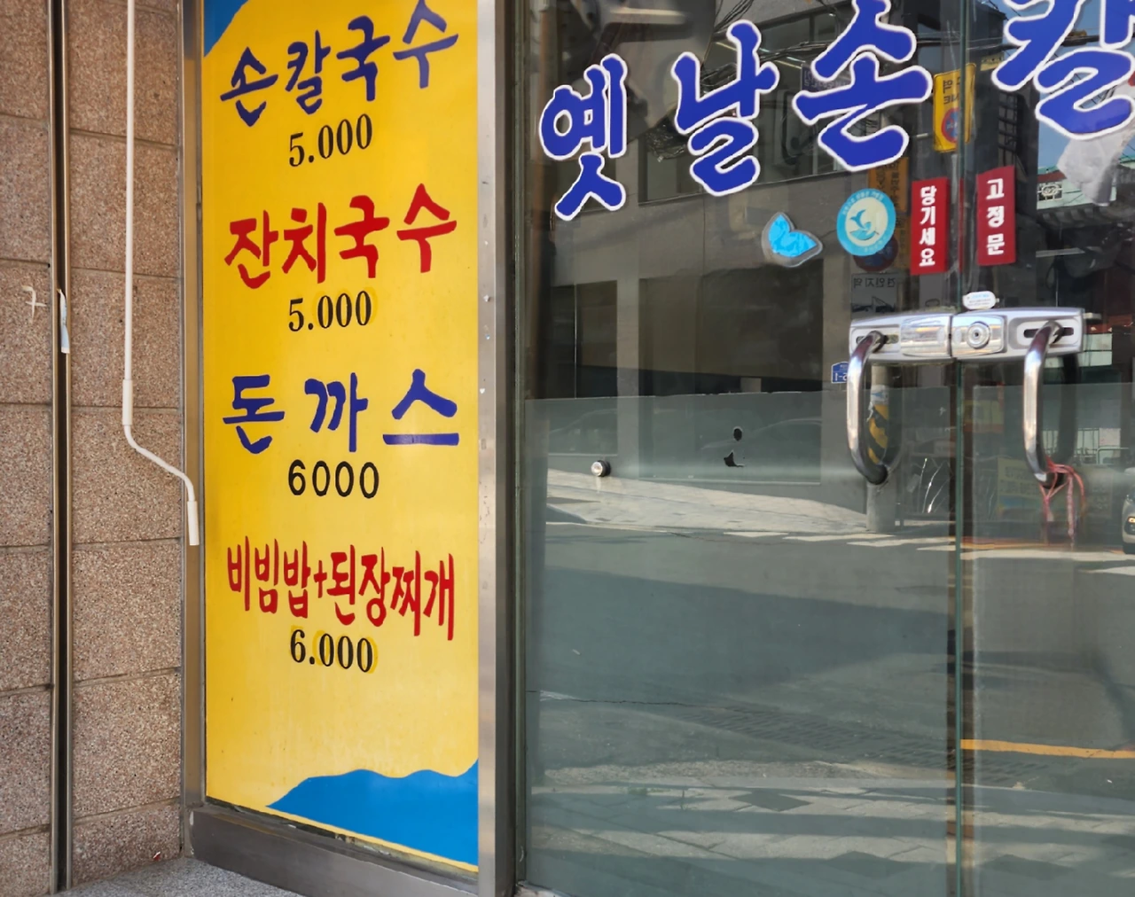 룰루랄라 단골 칼국수집에 갔으나 앗. 브레이크 타임! 아니 벌써! 문을 열고 물어보니 사람이 너무 몰려 육수가 다 떨어져 지금 문을 닫고 육수를 새로 끓이는 중이란다. 두 시간은 걸린다는 것이다. 에고 칼국수를 먹기로 한 우리는 할 수 없이 장사할 것 같지도 않은 그 볼품없는 집에 갔다. 문을 열고 들어서자 신발 놓는 곳 조금 남겨두고 그대로 방바닥. 신발 벗고 올라가 바닥에 앉는 형태다. 아주 작은 그곳엔 밥상이 꼭 네 개 있고 뒤로 그대로 주방이다. 70대 아주머니 혼자 모든 걸 하는 것 같다.