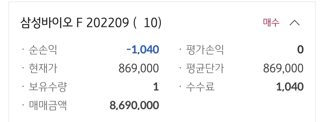 삼성 바이오 선물. 천 원 손실 중.