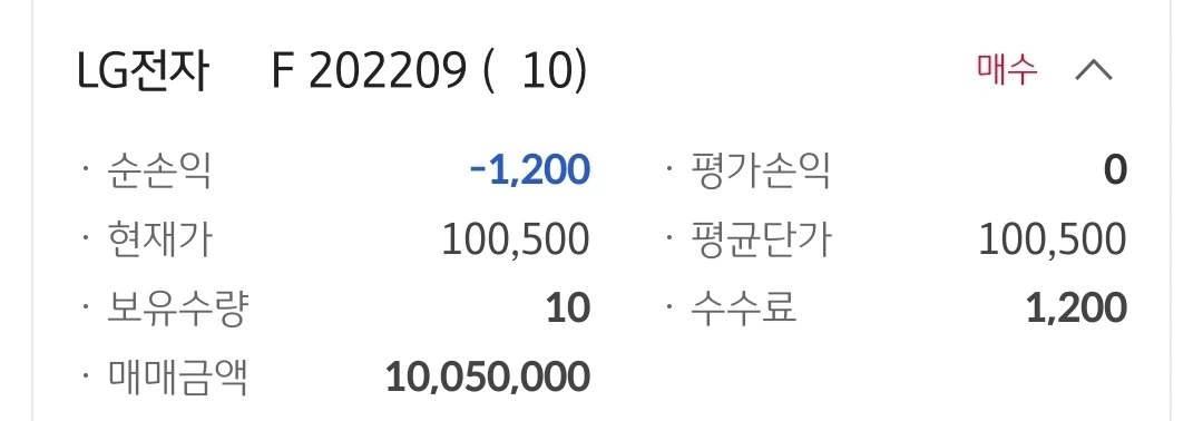 엘지전자 선물. 천 원 손실 중.