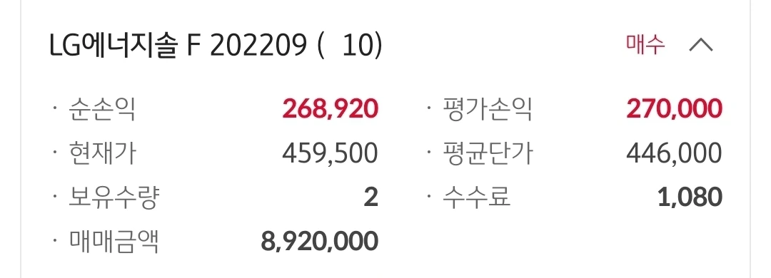 엘지에너지솔선물. 26만 원 수익 중.