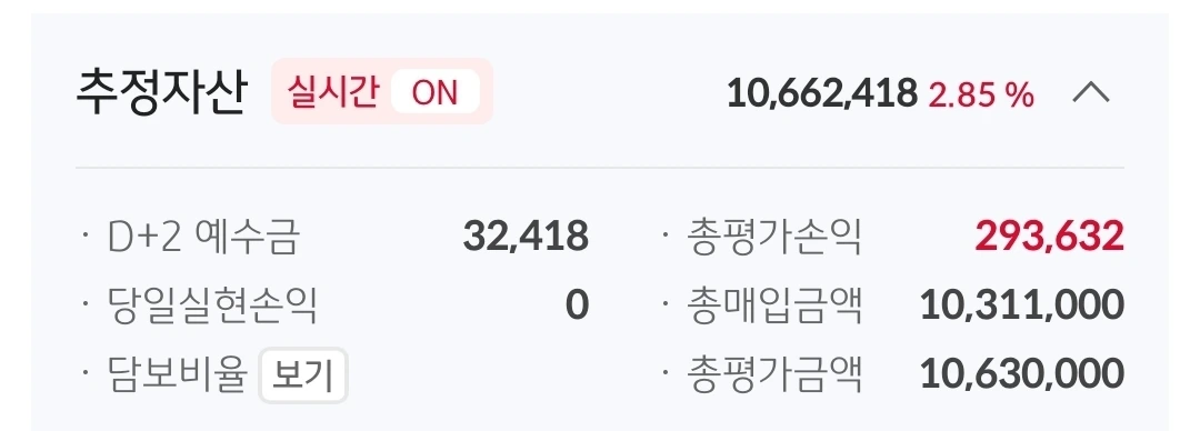 현물 계좌. 1066만 원. 934만 원 손실 중.