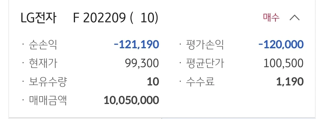 엘지전자선물. 12만 원 손실 중.