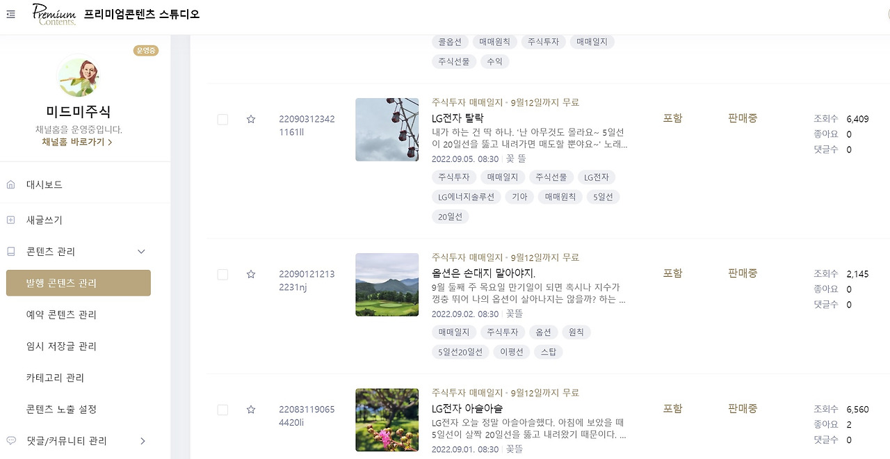참 신기하다. 내가 이곳 브런치에 주식에 관한 글을 올렸을 때 조회수는 대부분 백 명정도였고 많아야 이삼백 명 정도였다. 그런데 네이버 프리미엄 콘텐츠로 이사 가고 나서 세상에 얼마 되지도 않아 이제 겨우 2주 정도인데 조회수가 많은 건 6천을 넘고 대부분 이천 얼마 천 얼마 그렇게 많으니 깜짝 놀라겠다.