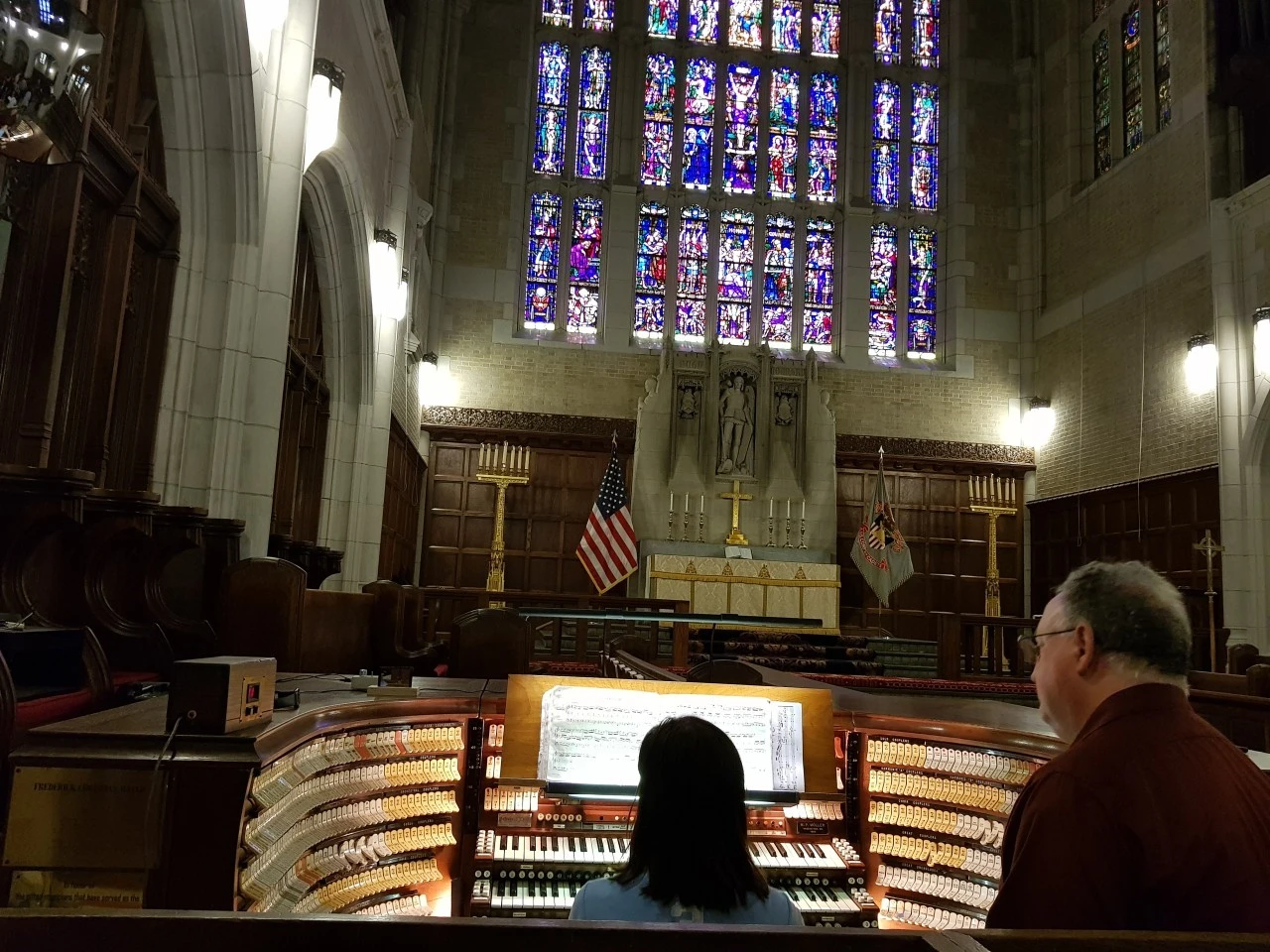 그리고 위를 보니 오마 낫 어마어마하게 큰 파이프가 쭉쭉 빵빵 와우. 아. 그리고 유럽에서 보던 스테인드 글라스 멋지다. 따라라라라~ 울려오는 파이프 오르간 소리. 앗. 모지? 저~ 앞에까지 쑤욱 가보 잣. 옆 통로로 살살 걸어 앞으로 앞으로~ 빨리빨리~ 호홋