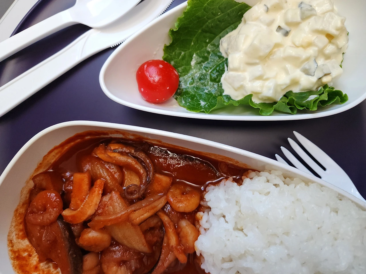 매콤한 오징어 덮밥 아니면 파스타 두 종류였는데 우린 오징어 덮밥을 주문했다. 맛있다. 우리 입맛에 꼭 맞는다. 샐러드와 토마토 한 개. 맛있게도 냠냠. 그러니까 꼭 필요한 것만 꼭 필요한 때 주었다. 예를 들어 비행기를 타고 아, 목이 마르다 할 때 즈음 스튜어디스들은 종이컵에 생수를 담아 쫘악 나누어 주었다. 물을 마시고 한 참을 가다 아, 또 목이 마르다 할 때쯤 또 물이 배달되었다. 그리고 아, 배가 고프네. 할 때쯤 정말 밥이 배달되었다. 그리고 따뜻한 커피를 드시겠냐 물었다. 물론 네! 대답했고 우리가 들고 간 보온병에 커피를 받았다.