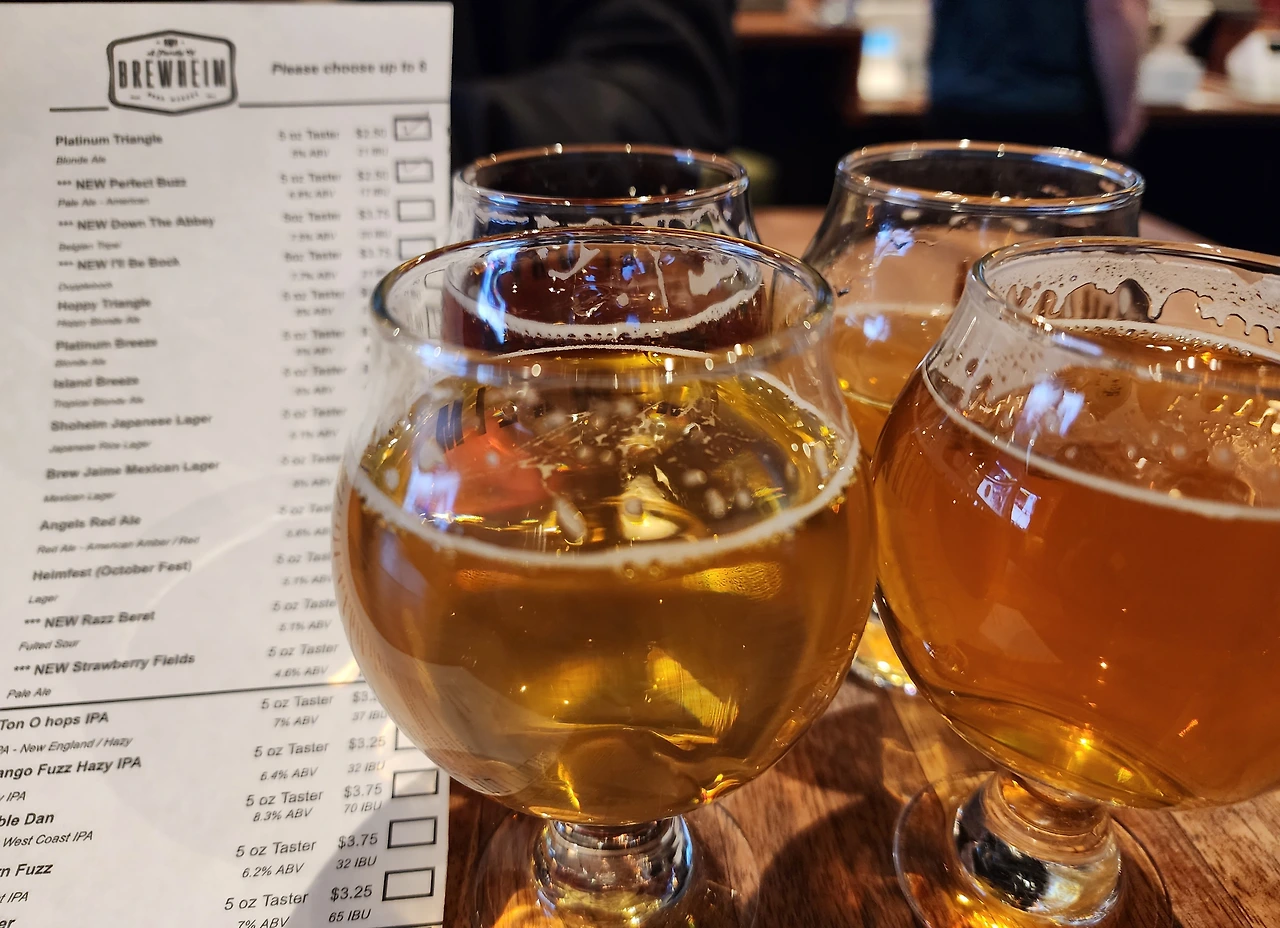 브루하임이라고 맥주라는 뜻의 브루와 애너하임의 하임이 합쳐 만들어진 이름의 맥주공장. 그곳엔 안주는 하나도 없이 그냥 맥주만, 특히 새로 만들어진 맥주를 시음해보는 곳이다. 짐을 풀고 산책 삼아 동네를 어슬렁어슬렁 걸어 들어간 곳이다. 은빛 커다란 드럼통 같은 것들이 즐비한 맥주공장을 그대로 눈으로 보며 수많은 맥주들 이름 중에서 마시고 싶은 걸 주문하는 거다. 시음해보고 싶은 것들을 주문하면 동그랗게 구멍이 뚫린 나무 쟁반에 작고도 예쁜 와인잔 같은 곳에 맥주가 담겨 나온다. 구멍마다에는 번호가 적혀있고 맥주 이름 옆 빈칸에 번호를 적어 주문하면 같은 번호의 구멍에 주문한 맥주가 들어 있다. 맥주 이름과 맛을 잘 비교해볼 수 있도록. 오호 신기해라.