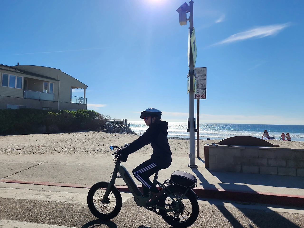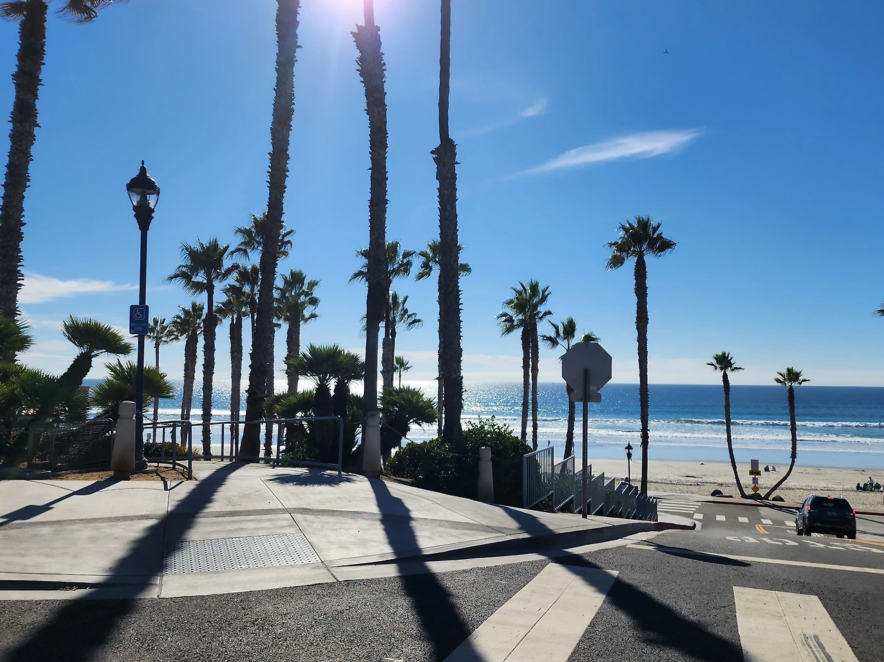 자전거로 쌔앵쌔앵 달리는 사람. 해변을 바라보며 친구와 하염없이 이야기를 하는 사람. 쭉쭉 뻗은 야자수, 나무 그늘에 앉아 속삭이는 연인, 한가롭게 거니는 사람, 바삐 가는 사람. 모래밭에 눕듯이 앉아 바다를 바라보는 엄마. 그 앞에서 소꿉장난하는 어린 딸들, 끊임없이 내리쬐는 밝은 햇살, 그리고 예쁜 집들. 참 평화롭다.