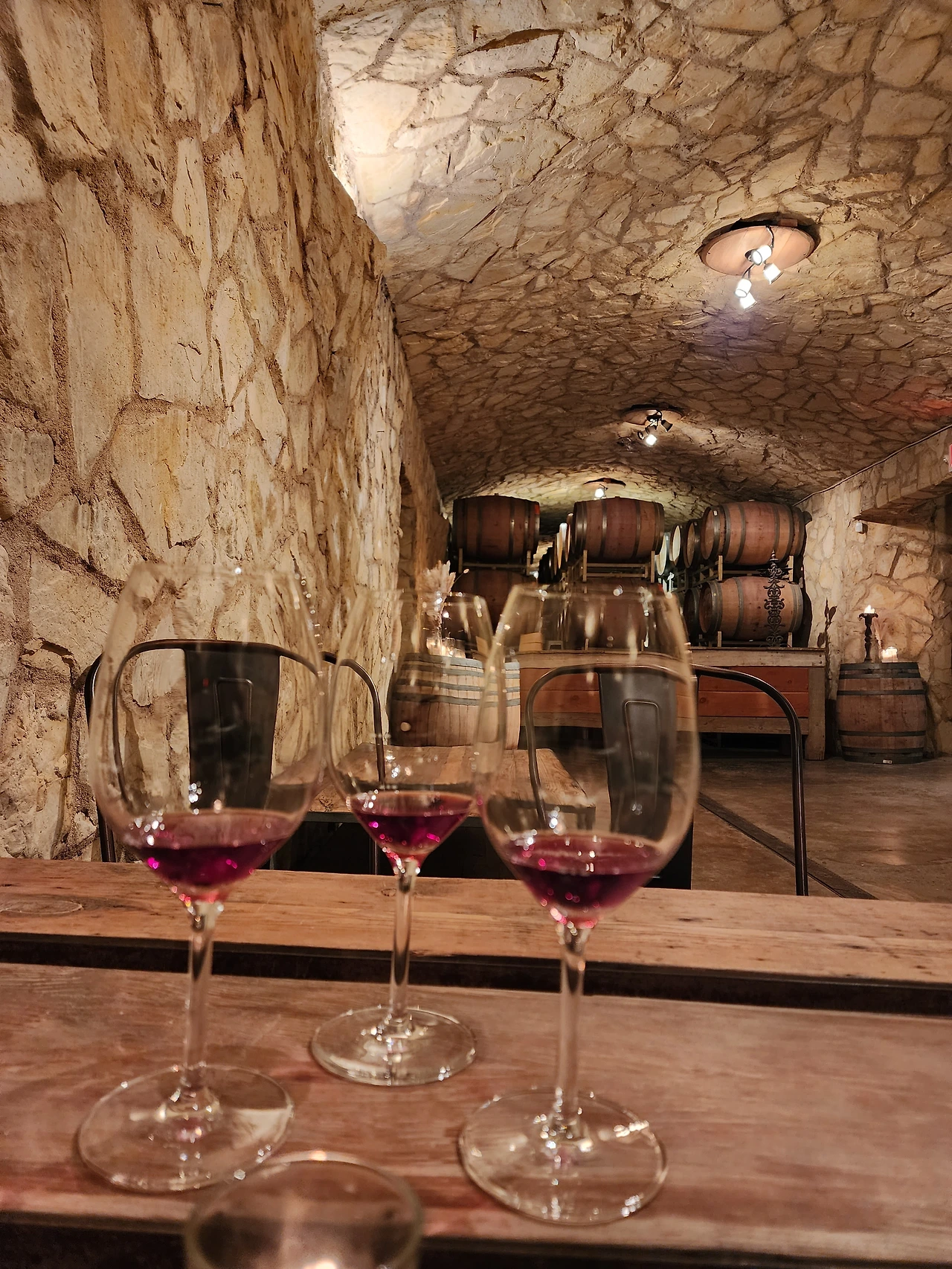 아들을 따라 동굴 속으로 들어간다. 지난번처럼 나누어 테이스팅이 가능하단다. 오케이. 게다가 잔을 받아서 동굴 안 깊숙이에서 마셔도 된다는 것이다. 따스한 햇빛아래 야외 테이블엔 사람들이 한가득인데 동굴 안에는 빈 테이블만 있을 뿐 앉아서 마시는 사람은 없다. 오호 그렇다면! 네! 좋아요. 우리 여기서 마시겠습니다. 매 번 입구로 나와 와인을 받아갔는데 조금 후 이 분은 직접 우리가 앉아있는 동굴 안에까지 와서 와인을 따라주며 설명해 준다. 분위기가 더욱 와인을 멋스럽게 만들어주는 것 같다. 아들에게 배운 대로 먼저 코로 향을 후욱 맡고 입안에 넣어 또로록 굴리며 그 맛을 입안 전체로 느끼다 목구멍으로 꼴깍 넘기며 그 촉감을 즐긴다.