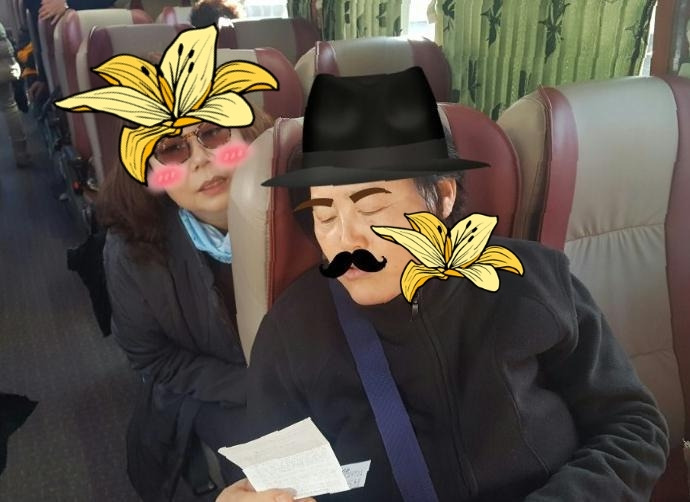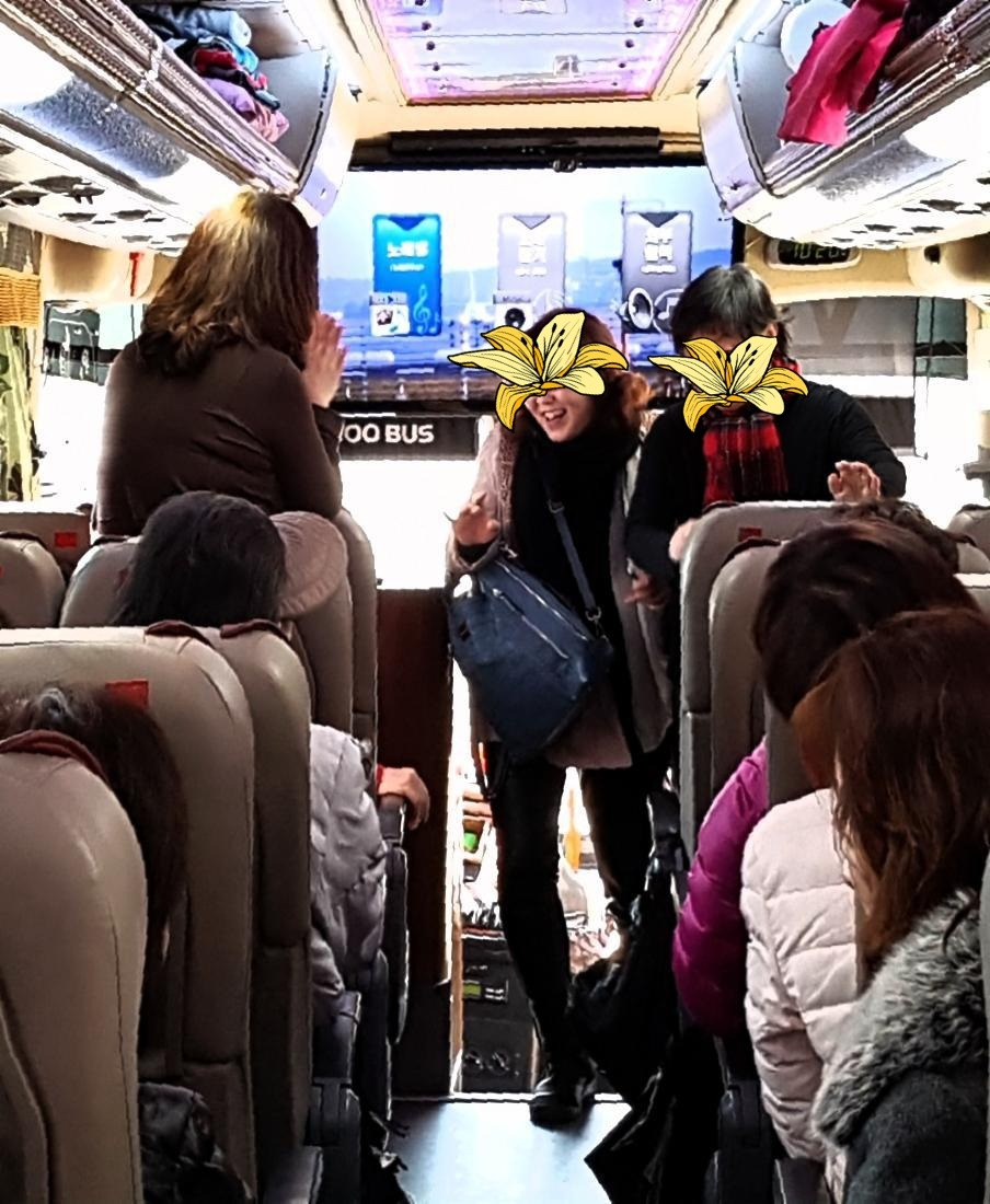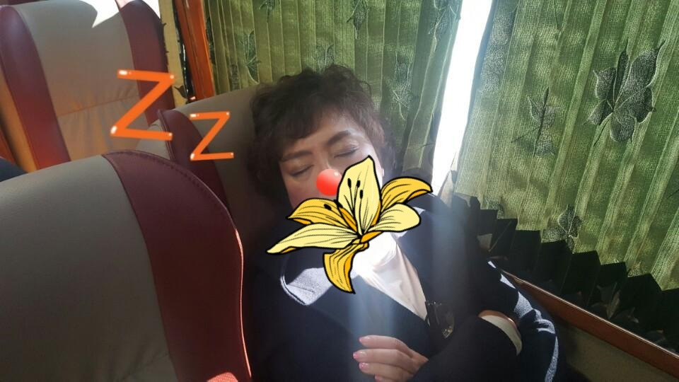 사진 속 선글라스의 젊은 남자. 그가 바로 우리의 버스 기사님이시다. 그는 버스 타고 가는 내내 우리들로 하여금 배꼽 쥐고 깔깔대게 만들었으니, 하하. 푸하하하. 오며 가며 우리들 모습을 슬금슬금 찍는 가 싶더니, 버스 안 대형 TV에 우리들 모습을 등장시키는 게 아닌가. 하하. 사부작사부작 다니며 한 컷 한 컷 그가 찍은 사진을 대형 화면에서 즉시 확인하며 깔깔 호호호 푸하하하 아무도 몰라. 누구도 몰라. 우리들의 숨은 이야기. 아아 잊지 못할 정신 여고 때~ 히히.