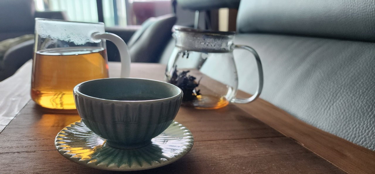 오랜 세월 함께 우정을 나누고 있는 작은 애 학교 다닐 때 학부형 엄마들. 일 년에 두 번 일박이일 나들이를 한다. 그 먼 길을 가는데 바리바리 짐도 무겁게 항상 찻자리를 마련해 오는 엄마가 둘 있으니 절에 다니며 정식으로 다도를 배운 분들이다. 커다란 바닥 깔개에서부터 온갖 다기에 직접 만든 다식까지. 현장에서 딴 꽃을 넣을 꽃병까지 그야말로 차를 즐기는 데 있어야 할 모든 게 있다. 이상한 것은 내가 집에서 마실 때와는 영 다르게 참 많이 마신다는 것이다. 집에서는 커다란 차 우리는 곳에 넣어 머그잔에 듬뿍 따라놓고 마시는데 그 한 잔을 다 마시지도 못할 때가 많았다. 그런데 여기선 그 엄마들이 작은 잔에 따라주는 족족 도대체 몇 잔을 마시는지 모르게 마시고 또 마신다. 그러면서 속은 편안해진다. 그 많은 도구는 없더라도 우선 머그잔이 아닌 찻잔. 그리고 차를 우려내는 다관. 그 우린 차를 따라놓는 숙우만 있어도 살짝 다도를 흉내 낼 수는 있겠다. 그 자리에서 어떤 걸 사라 어떤 걸 사라 조언을 받고 세 엄마가 다관과 숙우를 인터넷으로 주문했다. 배달된 다관과 숙우 그리고 집에 있던 찻잔으로 난 남편에게 차 제대로 즐기게 해 주겠노라 큰소리 빵빵 친다. 나처럼 차를 따라주는 사람을 팽주라고 해. 주워들은 지식을 뿜어내며 계속 작은 찻잔에 따라주니 어, 좋은데. 끝도 없이 잔을 비운다. 머그잔에 마실 때와는 차원이 다르다. 하하 아 좋아라.