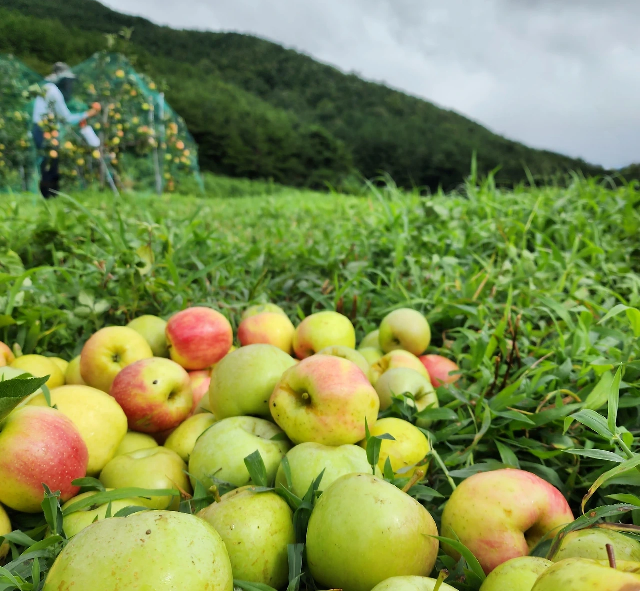 태풍이 가시는 듯하자마자 나와 함께 밭을 사고 가꾸는 S에게서 전화가 왔다. 언니, 가자! 태풍에 쓰러져있을 나무도 세우고 떨어져 있을 사과도 줍자고. 오케이! 태풍 때문에 창문 꼭꼭 닫고 다시 카우치 포테이토가 되어 쏘파에 철커덕 붙어있을 뻔한 우리에게 일종의 시원한 바람 같았으니 오케이~ 남편과 부지런히 도구를 챙긴다. 낫이며 호미며 궁둥이 의자며 장화며 장갑이며. 당장 출발! 마침 우리는 점심을 하려던 차였는데 시간이 없다. 빨리빨리! 그래서 가는 길에 김밥 두 줄을 사서 그는 운전하고 내가 옆에서 하나씩 먹여주며 서둘러 밭에 갔다. 아니나 다를까. 사과는 무척 많이 떨어져 있고 나무도 세 그루나 쓰러져있다. 재빨리 오길 잘했다. 다시 잘 살아주길 바라며 삽으로 영차영차 옆의 흙을 퍼 날라 새로 심는 듯 튼튼히 해주고 기다란 봉 세 개로 단단히 고정시켜 주었다. 태풍이 막 지나간 자리라 한 여름 땡볕은 커녕 가을바람 마냥 시원한 바람이 솔솔 분다. 모처럼 우리 두 부부는 힘차게 일을 했다. 선선한 바람에도 땀이 주룩주룩 비 오듯 흐른다. 모든 정리를 끝내자마자 헐레벌떡 집으로 돌아와 쫙쫙 찬물 샤워를 했다. 우하하하 이보다 더 좋을 순 없다.