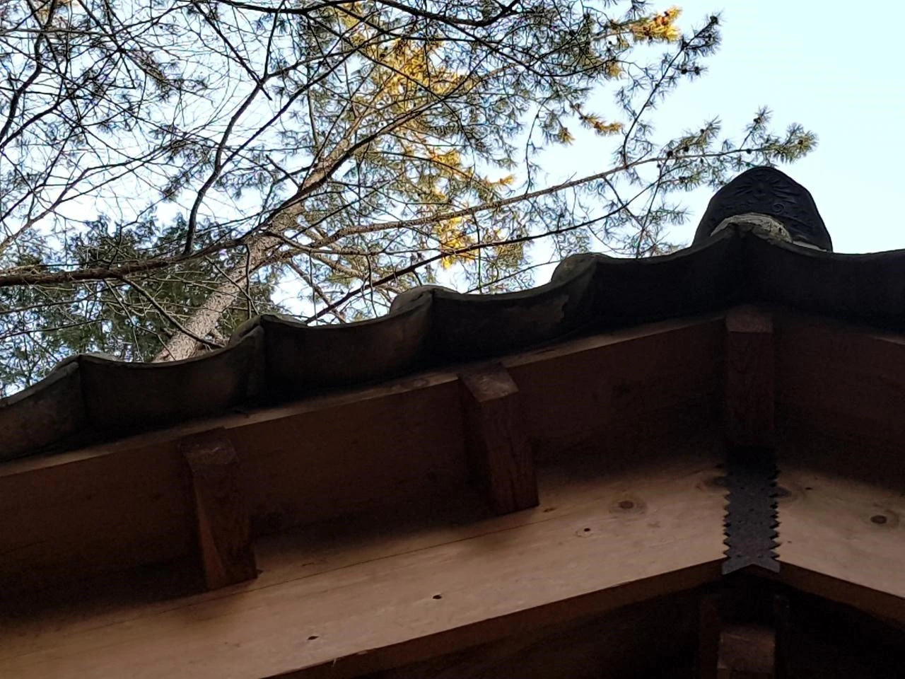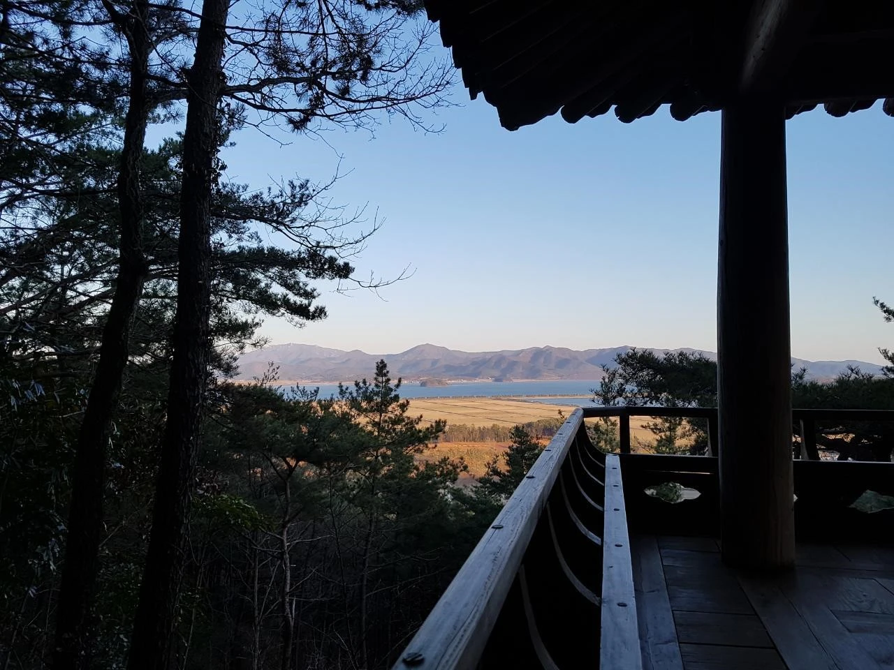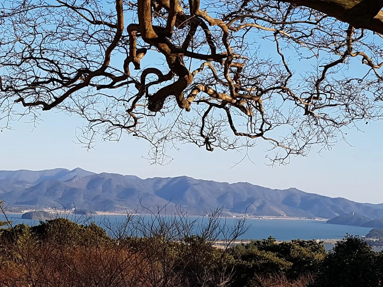 '남쪽 바다에 임하고 골 짜기 가득히 송백이 울창하고 동백 또한 곁 들여져 수목이 싱싱하게 푸른 모습이 사 계절을 통해 한결같은 절경' <동국여지승람> 이전하는 백련사 모습이다.