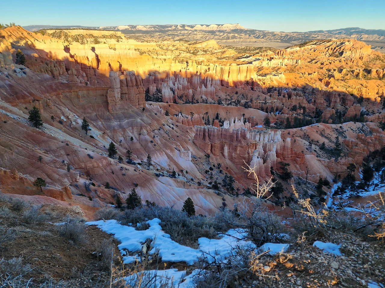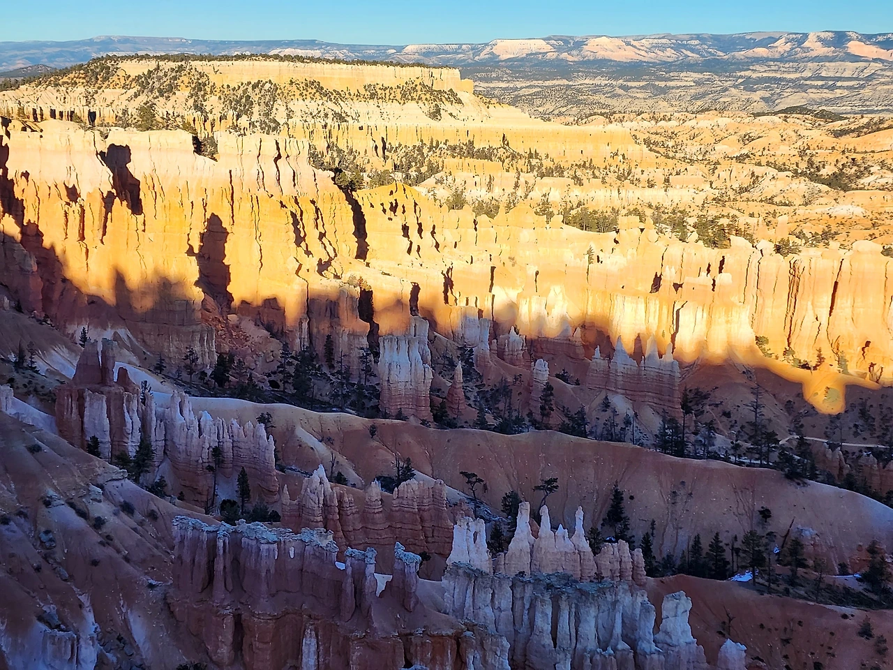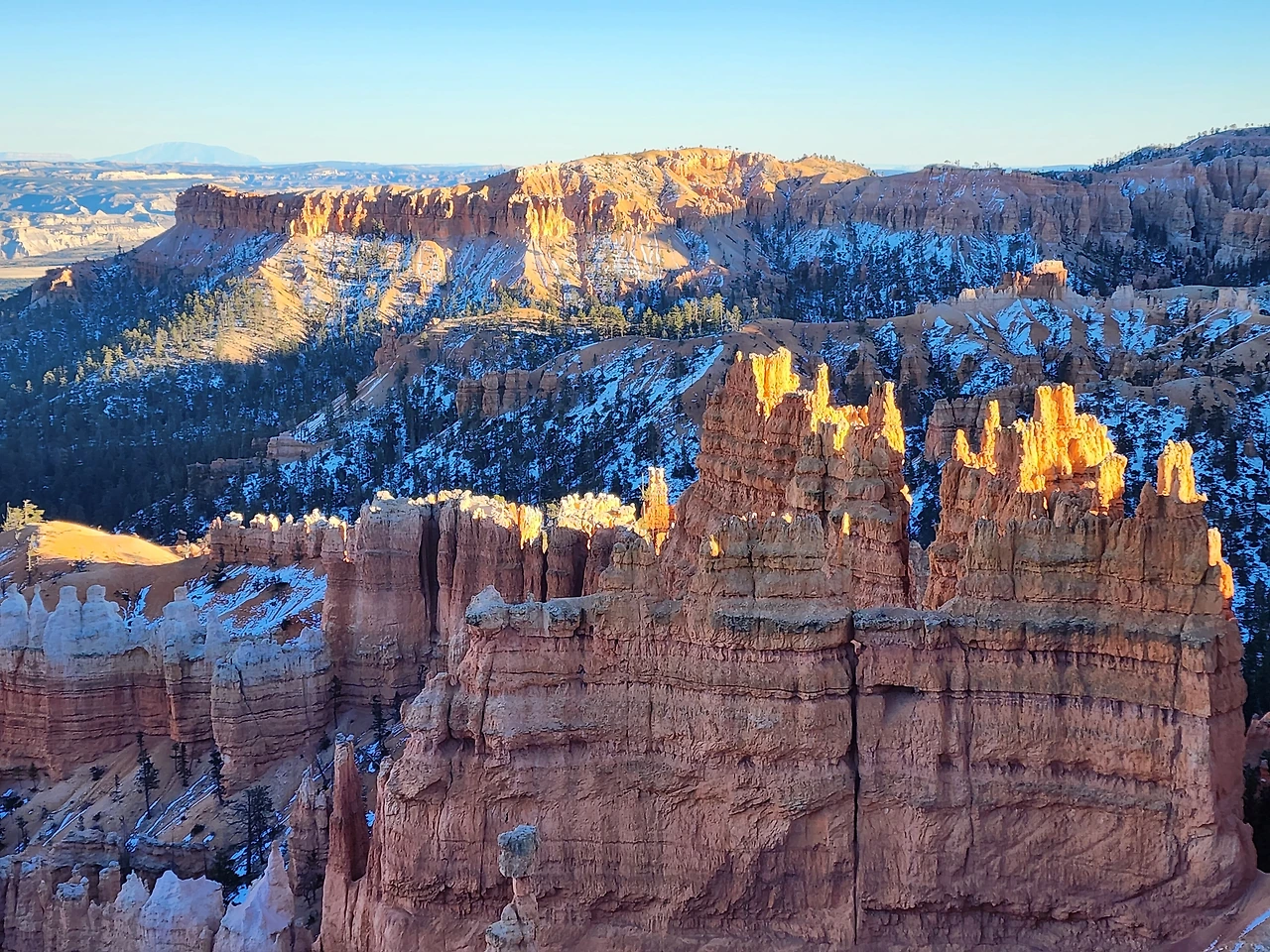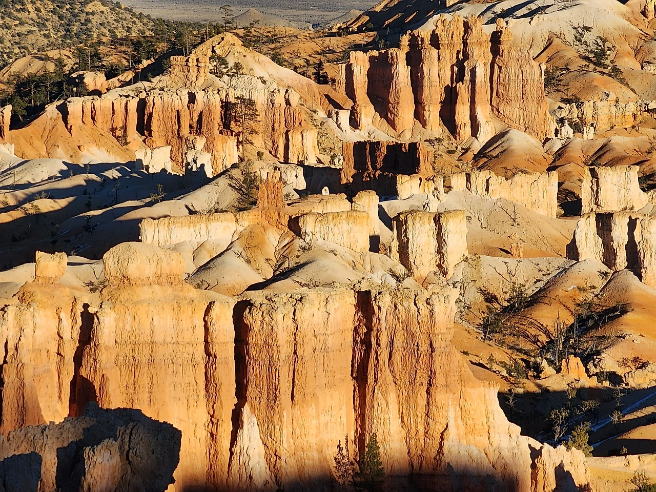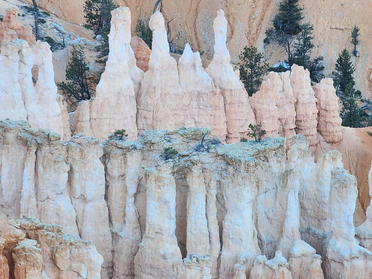 브라이스 캐니언은 수만 개의 섬세한 첨탑으로 된 반원형 극장들이 여러 개 모여있는 모습이다. 기묘한 첨탑 하나하나는 모두 물의 힘으로 만들어졌다. 바다밑에 있을 때 토사가 쌓여 만들어진 암석이 우뚝 솟은 후 빗줄기와 흐르는 물의 힘에 의해 다시 본래의 토사로 변해 흘러내리는데 비교적 단단한 암석만 침식되지 않고 남아 무수한 첨탑이 된 것이다. 이 첨탑들을 후두(Hoodoo)라고 한다. 석회질이 풍부한 이 암석 기둥은 사람의 키만 한 것에서부터 10층 건물 높이에 이르기까지 다양하다. 수억 년 동안 퇴적된 협곡 중 맨 위에 있어 제일 젊은 캐년이다. 가장 높아 가장 춥다. 정말 갑자기 추워져 모두들 두툼한 겨울 패딩을 꺼내 입느라 난리다.