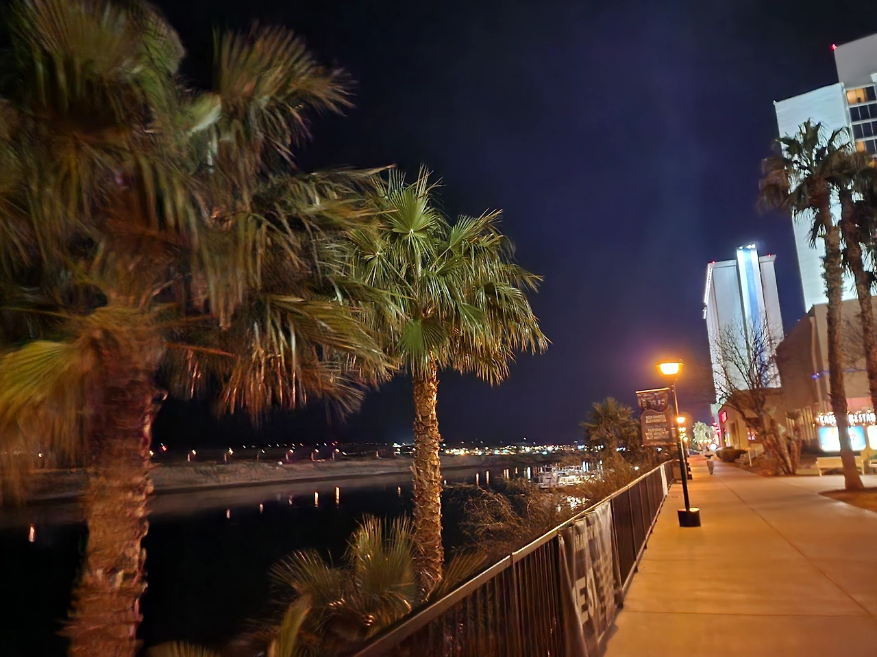 호텔에서 나오자마자 길게 강 따라 산책로가 있고 줄줄이 멋진 호텔들이 늘어서있다. 호텔의 화려한 장식을 구경하며 우린 한밤중에 걷고 또 걷는다. 30년 전 라스베이거스에서의 마지막 밤에 그렇게나 카지노가 궁금했는데 그것도 한 때뿐 지금은 흐느적흐느적 남편과 함께 하는 밤산책이 더 좋다. 저 답답한 실내에서 무슨! 의견 일치로 라플린 호텔 화려한 주변을 어슬렁어슬렁 걷는다. 아, 어느새 마지막 밤이야.