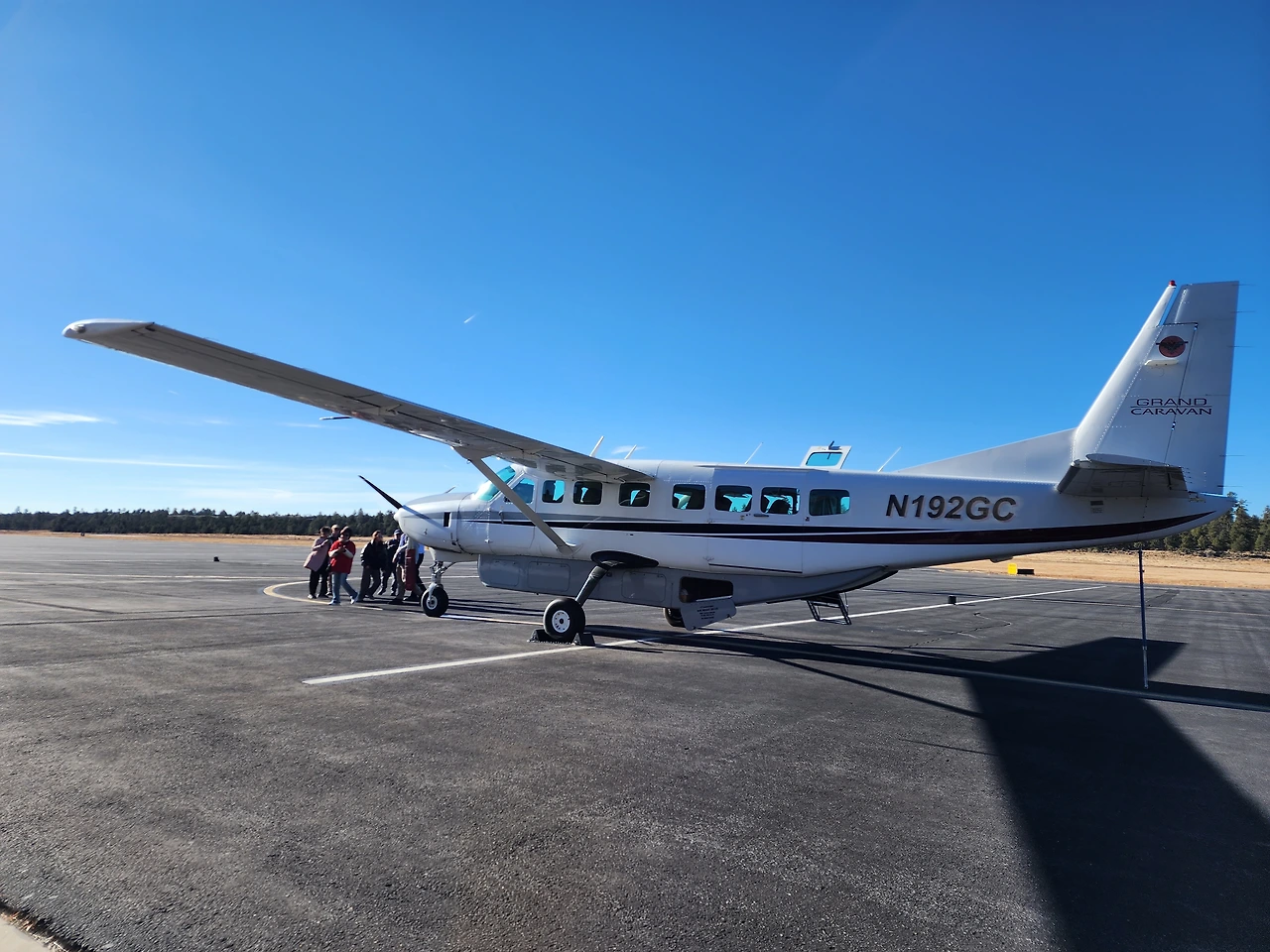 남편과 둘만의 그랜드 캐니언 특별 산책을 마치고 경비행장으로 옮겨 사람들을 기다린다. 비행장 안으로 들어가니 자원봉사자들일까 꽤 연세 많아 보이는 할아버지 할머니가 빨간 가이드 복장으로 반갑게 맞아준다. 일단 하이 해놓고 푸하하하 무언가 영어를 해야지? 나의 적극성은 여기서도 발휘되어 비행기 도착하는 모습을 가까이서 찍을 수 있을까요? 용감하게 물어본다. 통한다 통해. 현지 영어가 통한다. 어디까지 들어갈 수 있다고 직접 나를 데리고 안내해 준다. 오호호홋 감사합니다. 기다려서 생생하게 도착하는 비행기를 촬영한다. 조용히 기다리지 않고 여기저기 들쑤시며 이 말저말 해대는 내가 남편은 영 못마땅한가 보다. 점잖게 한 자리 차지하고 앉아있을 뿐이다.