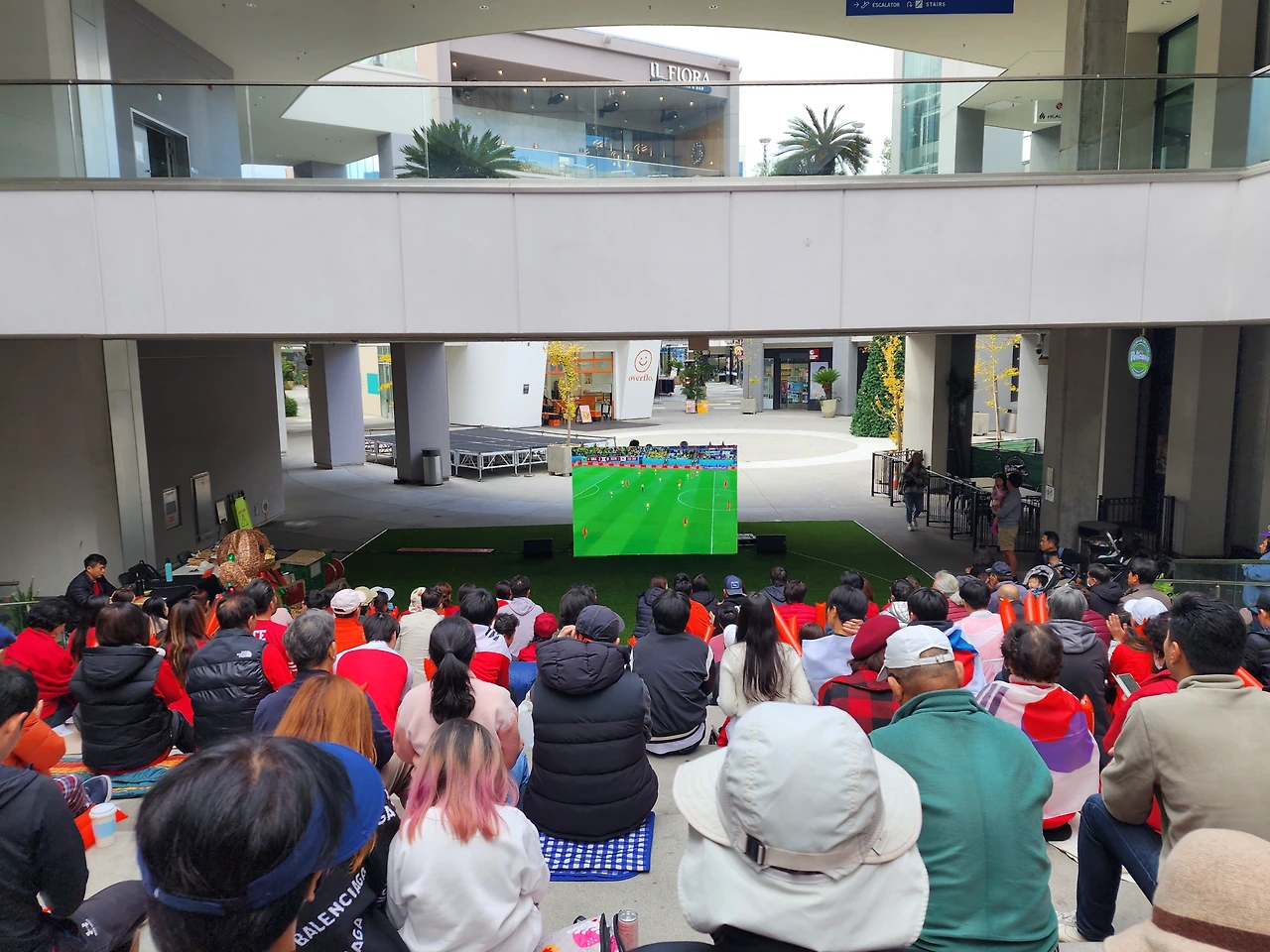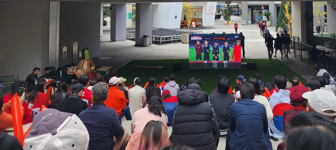 애너하임에 있는 아들 집에 있으면서 오늘은 월드컵 축구 16강전이 펼쳐지는 날. 월드컵의 열기를 아는 우리는 기대 만만으로 응원장소로 향한다. 하늘도 구름으로 아주 멋지다. 얏호~ 달려라 달려 드디어 들어서니 광장에서 어린 학생들이 K팝을 추고 있다. 맘껏 모양을 낸 한국 소녀들 뿐만 아니라 외국 소녀들도 있다. 바로 그들이 춤을 추는 그 광장에서 이제 응원전이 펼쳐진다. 오호 얼마나 신이 날까? 미국 이 근처 사는 우리 교포들이 모여 열띤 응원전을 펼친단다. 와우. 미리미리 자리를 잡고 기다린다.