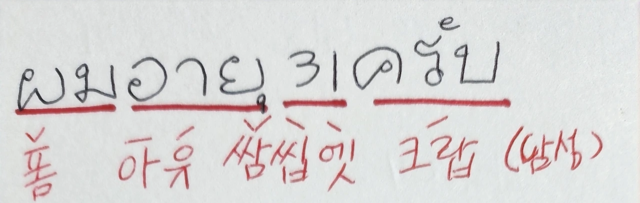 (본래 태국어에는 띄어쓰기가 없어요. 그러나 여기선 읽기 쉽게 띄어봅니다.)
