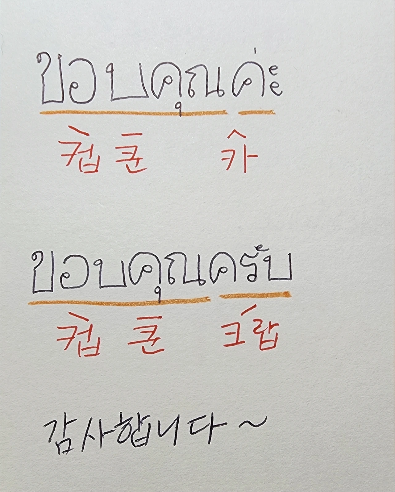 컵쿤크랍 ขอบคุณครับ 감사합니다~ (남성)