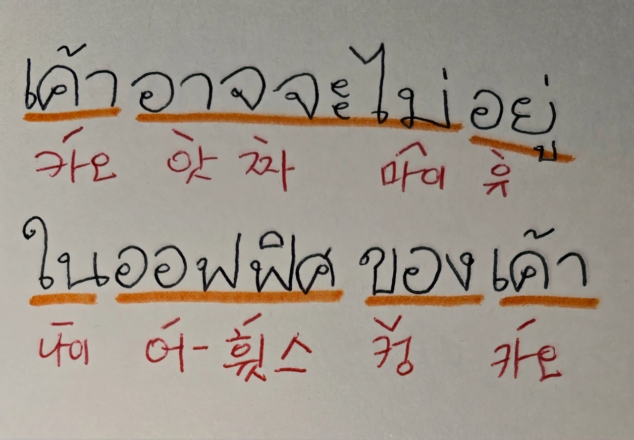 사무실에 없을거야. 카오앗짜마이유나이어휫스컹카오