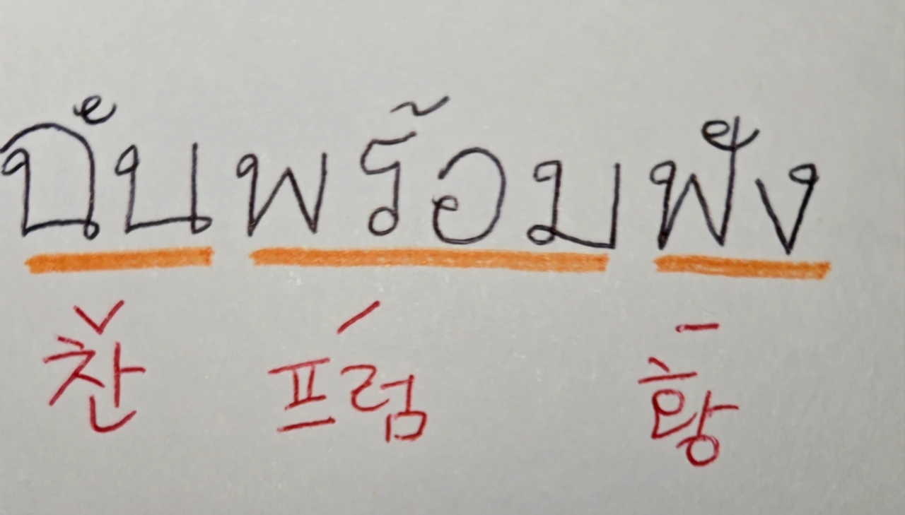 친구와 대화할 때 난 들을 준비가 다 되어있어. 말해봐. 또는 나 아주 집중해서 잘 듣고 있어. 그런 말을 할 때가 있지요? 그때 여자라면 찬프럼황 하면 됩니다. 남자라면 물론 남성용 1인칭 대명사를 써서 폼프럼황 하면 되겠지요. 여기서 더 나아가 여자가 존댓말로 하려면 찬프럼황카 가 될 것이요 남자가 존댓말로 하려면 폼프럼황크랍이 되겠지요. 여자가 존칭으로 말할 땐 카를 붙이고 남자가 존칭으로 말할 땐 크랍을 붙이기 때문이죠. 자. 그럼 오늘은 여자가 나 들을 준비 다 돼있어. 잘 듣고 있어 라고 하는 찬프럼황 을 보겠습니다.