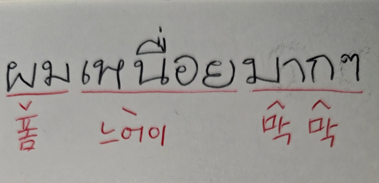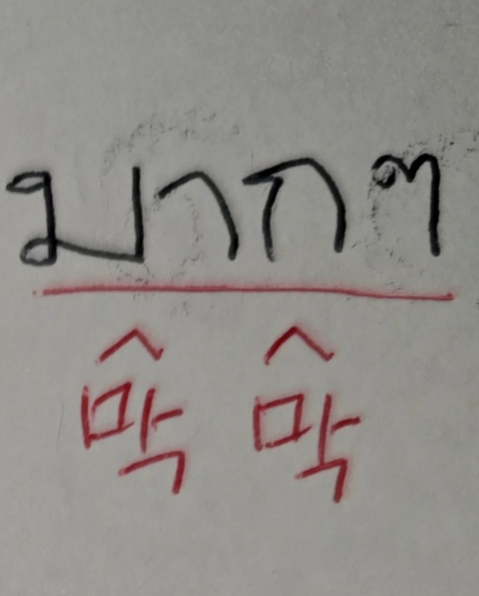 마이야목 ๆ 앞의 것 고대로 반복하라는 표시. 강조하기 위함. 그래서 앞의 것 막มาก을 고대로 반복해서 막마이야목 มากๆ은 막막มากมาก이라고 읽음.