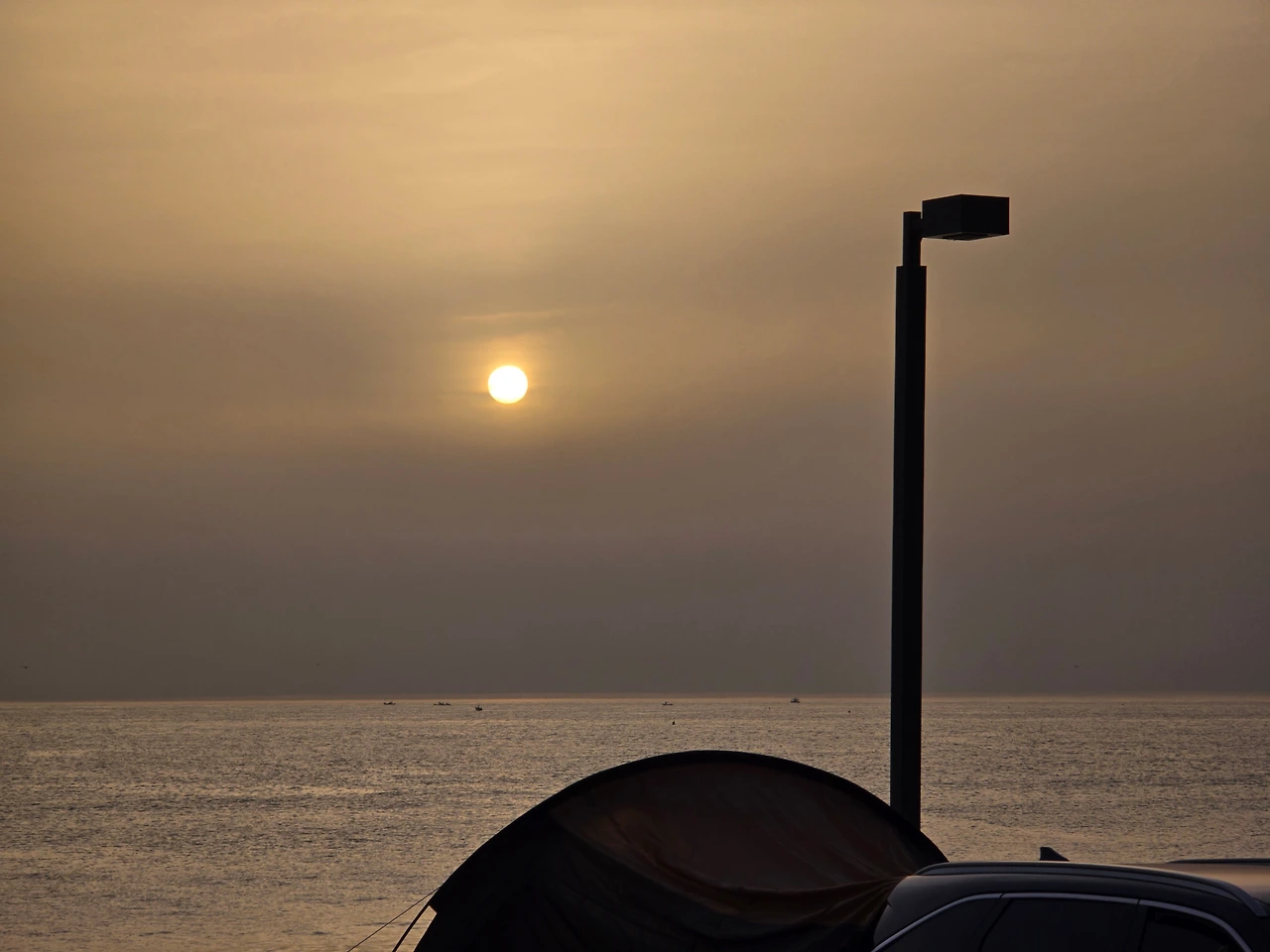 5시 30분에 해가 뜬다고 해요. 그래서 나는 알람을 해놓고 이른 새벽 일어났다. 일 년에 두 번씩 일박이일 하는 남편 대학 동창 모임에 왔다. 언제 이런 거 해보겠냐며 12 부부나 되는데 바닷가 카라반 숙소를 택했다. 날은 더운데 바닷 가라서일까 얼마나 추운지 모른다. 그래서 옷을 껴입고 나왔는데도 매우 춥다. 더 억울한 건 분명히 날이 맑다고 했는데 해 뜨는 게 전혀 보이지 않는다. 해무 때문이란다. 바닷가 수평선 위가 아닌 한참 위에 그래도 기다리니 살짝 해님이 나타났다. 바닷가 파도 소리는 언제 들어도 좋다. 이제 숙소는 편해야 할 것 같다는 여자들 원성이 자자하다. 하하 이런 카라반은 젊은이들 용 같아요. 하면서 이런 생활의 빠이빠이를 고했다. 너무 좁고 불편하다. 그래도 밤바다 파도소리는 듣기 좋았다.