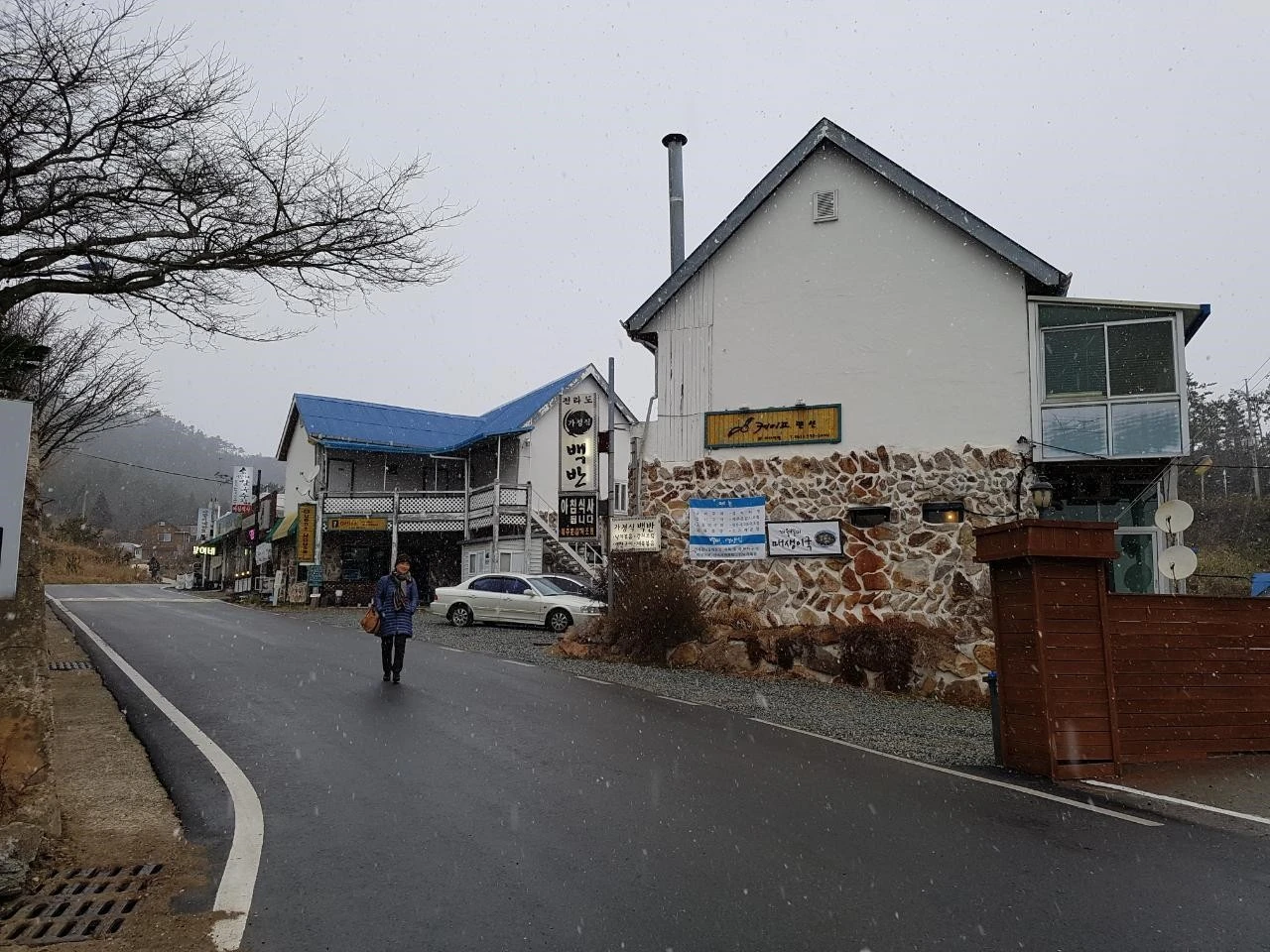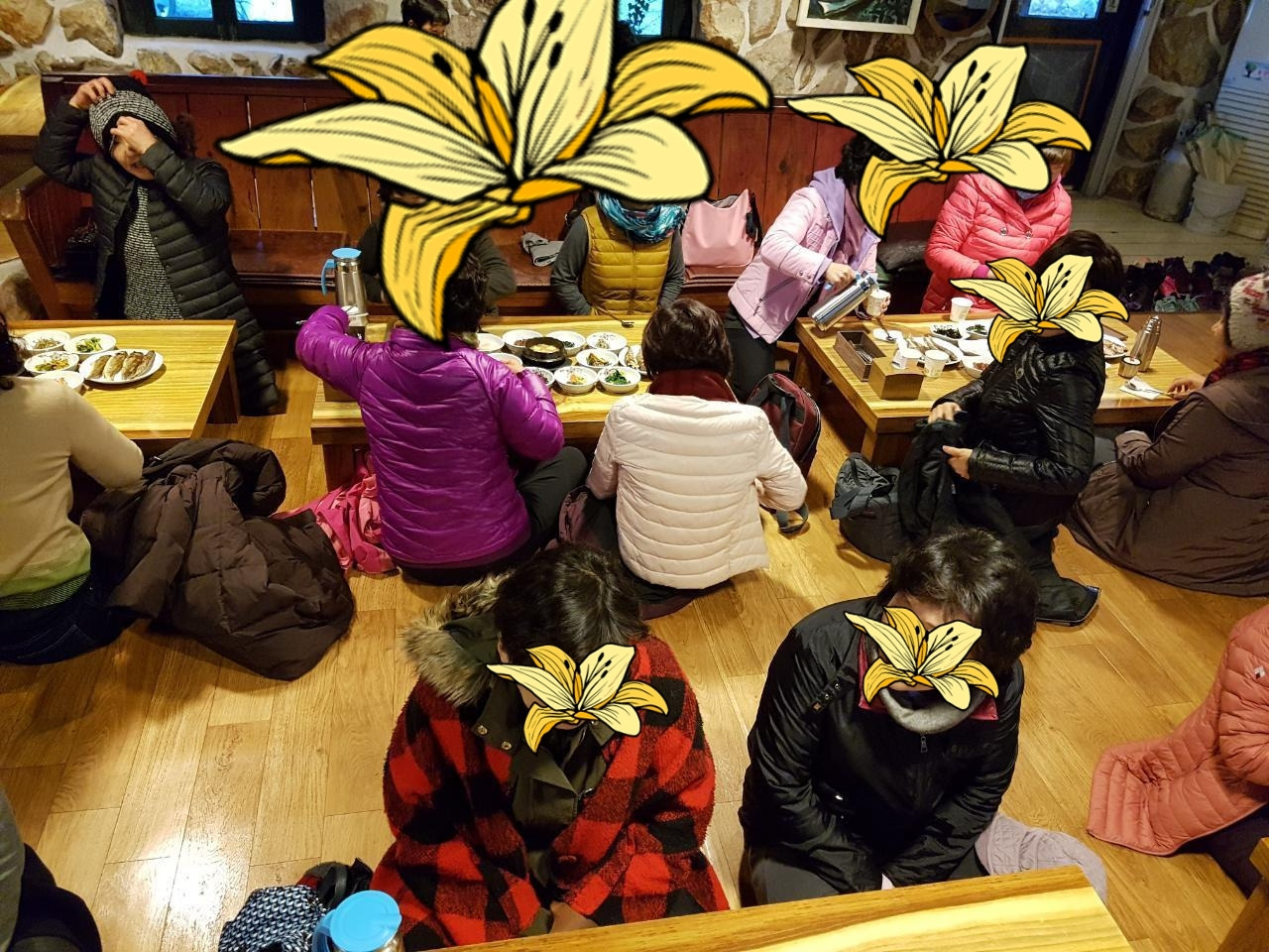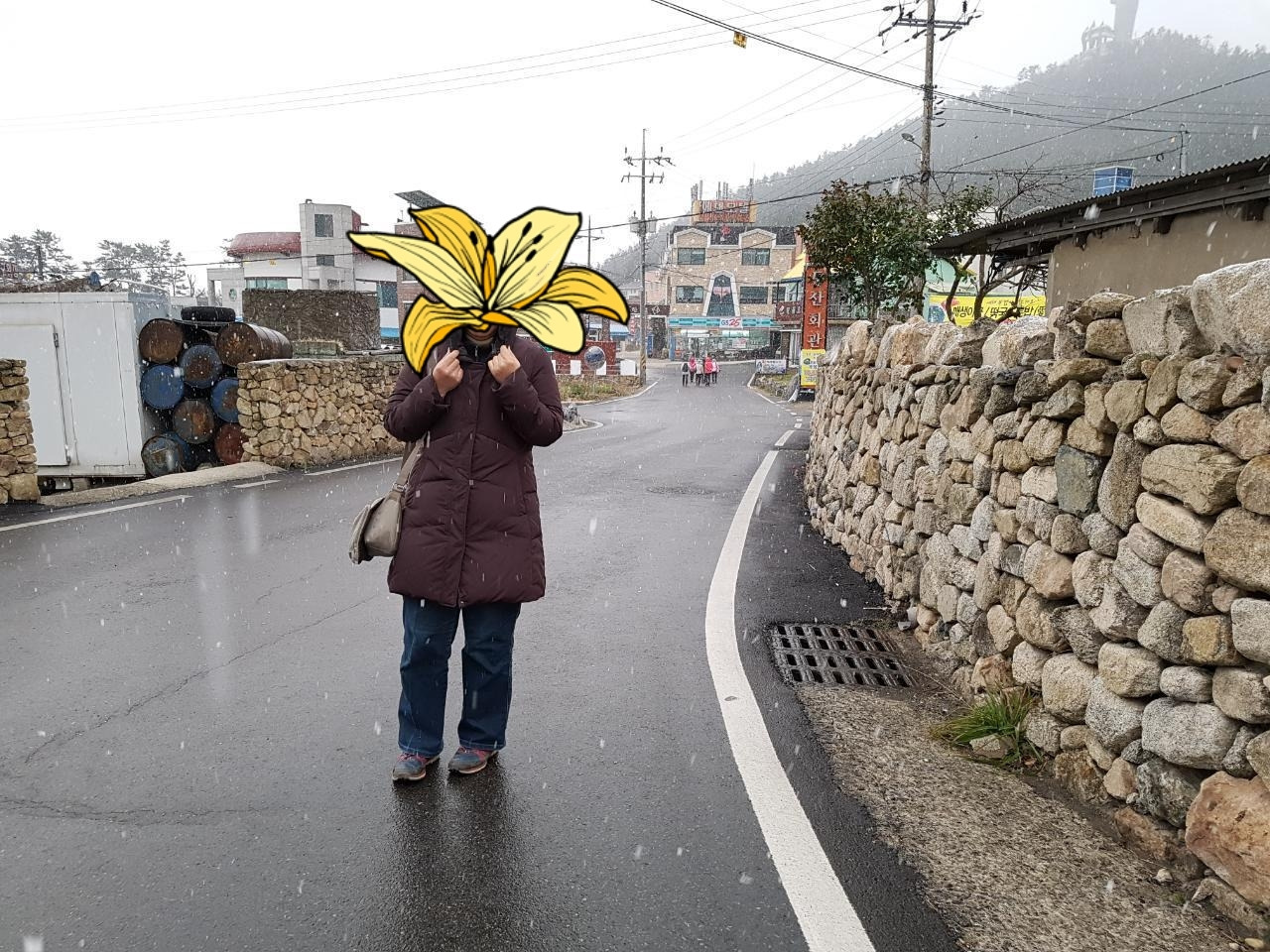 와우~ 너무도 정갈하고 맛있는 아침밥. 식당을 거의 다 차지하고 앉아 맛있게도 냠냠 신나게 먹는다. 아. 앉아서 창 밖을 내다보니 함박눈이 펑펑~ 너무 아름답다. 세상 근심 모두 내려놓고 오로지 친구들과만. 깔깔 푸하하하 자그마한 것에도 마냥 터져버리는 우리의 웃음. 어느새 이리 세월이 흘렀단 말이냐. 곁에서 보니 우린 모두 여고시절 그때 그 친구들 이건만. 밥을 다 먹고 숙소로 돌아가기 까지도 눈은 펑펑. 우산을 들고 나온 멋쟁이 경숙이의 인기는 하늘로 치솟고. 하하