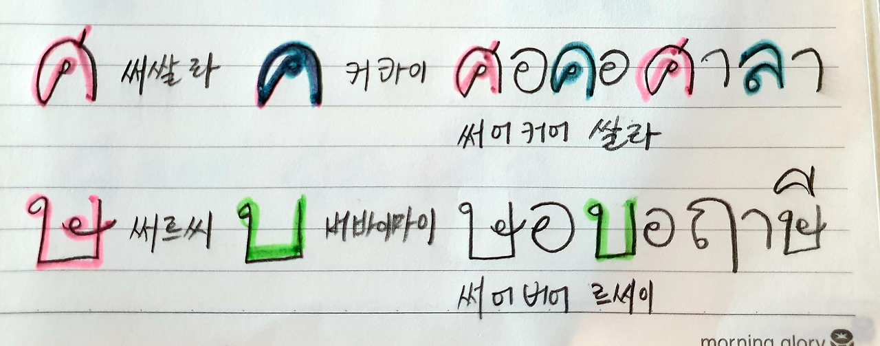 커카이 커쿠웟 처칭 터탄 터퉁 퍼픙 훠화 써쌀라 써르씨 써쓰어 허힙 요렇게 11개 중에서 오늘 세 개 써쌀라 써르씨 써쓰어 세 개를 공부한다.