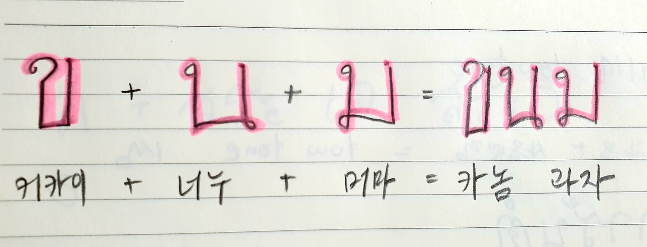 싸라 아 단모음을 그 끝에다 붙여주면 된다.