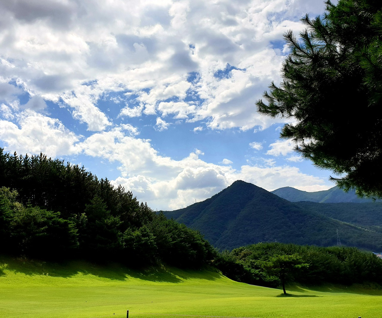 음하하하 다행히 언제 태풍 소식이 있었더냐 싶게 맑게 갠 하늘이다. 그렇다고 해님이 쨍쨍 기세 등등한 건 아니다. 커다란 검은 구름 속에서 가끔씩만 얼굴을 빠꼼히 내미니 그 새를 타 시원한 바람이 마치 가을바람처럼 선선하게 불기도 한다. 태풍 여파로 며칠 비가 와서일까 촉촉한 듯 폭신폭신 깔끔한 잔디는 그 절정을 이루고 비에 씻긴 듯 상큼한 공기는 절로 흐읍흡 코를 벌렁거리며 힘껏 들이마시게 한다. 오홋 이 무슨 횡재란 말이냐. 와우~