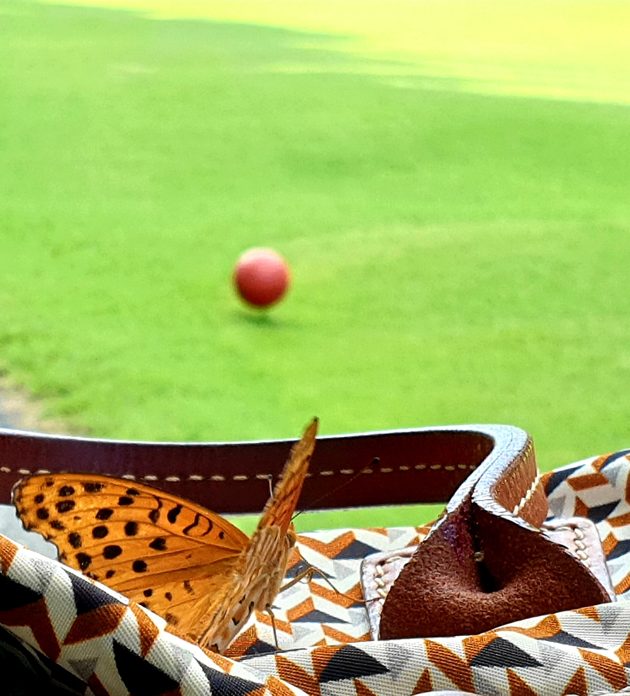 앗, 날아가는 가 싶더니 카트 앞 가방 위로 옮길 뿐이다. 사람이 그렇게 좋은가? 할 수 없이 그냥 달고 다니기로 한다 하하. 네가 날아가고 싶을 때 언제고 날아가렴. 반려견 곁에 두듯 반려 나비 곁에 두고 우리는 공을 친다. 그런데 왜 정말 날아가지 않을까? 호랑나비가 나를 좋아하는 걸까? 벌써 몇 번 째인가? 그때와 꼭 같은 그 호랑나비 모습으로 말이다. 하하 그렇다고 나를 좋아하는 걸까? 푸하하하 요건 아니지. 착각은 망상이요 망상은 해수욕장이라던가 푸하하하 나도 참!