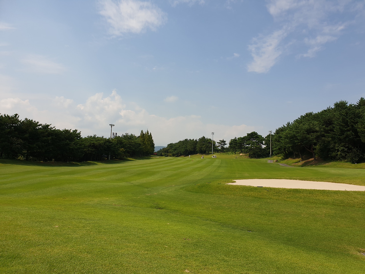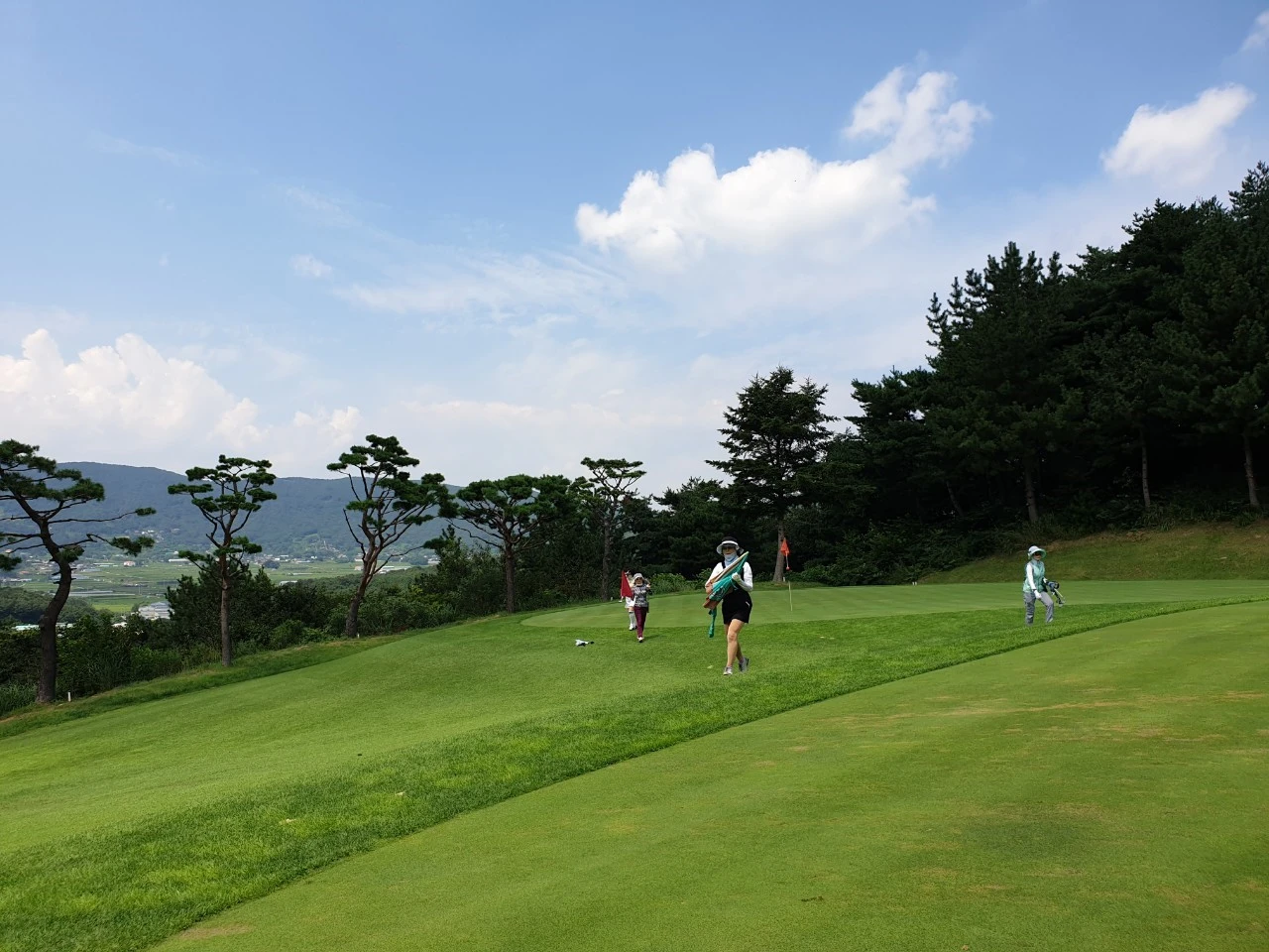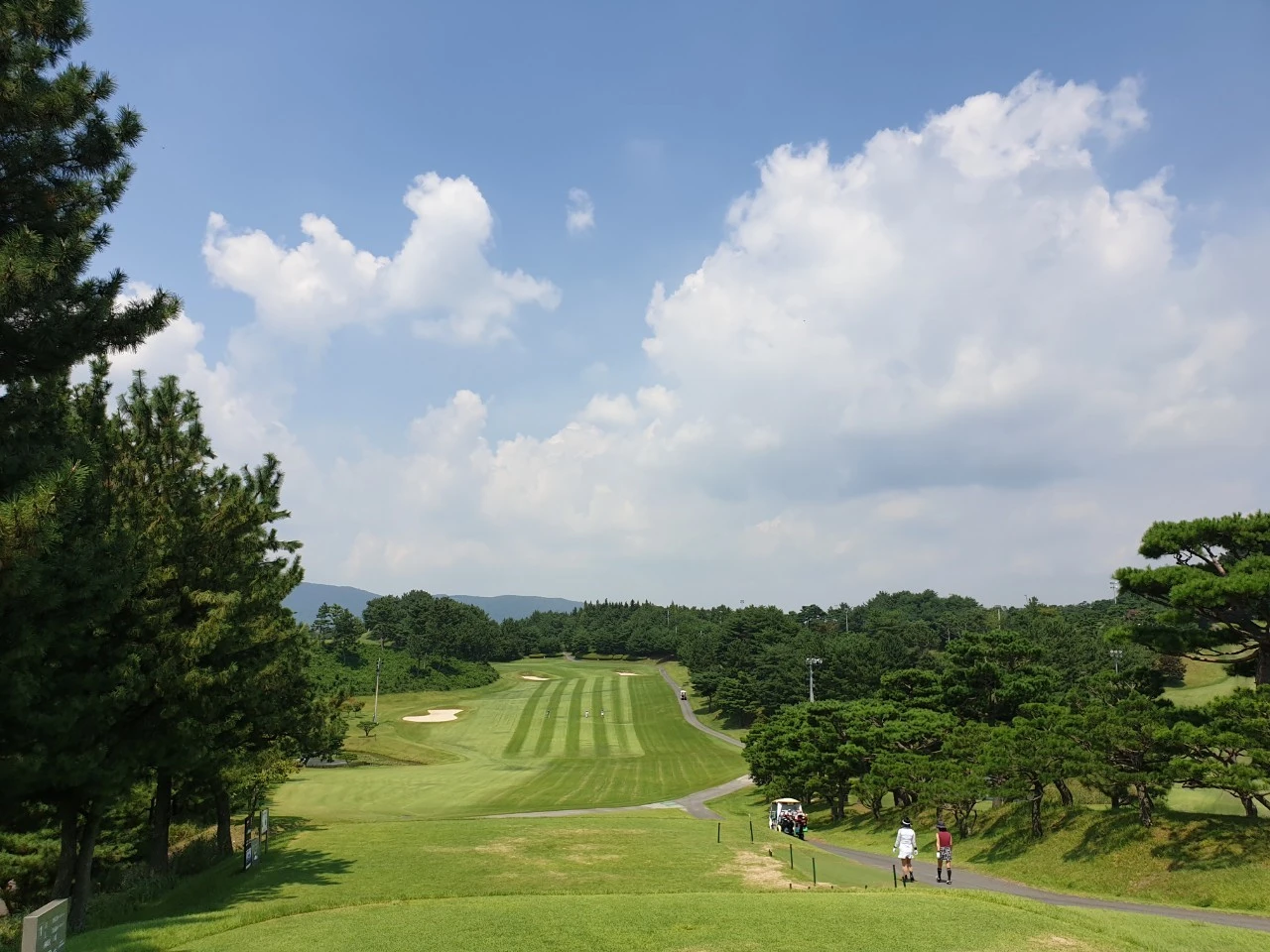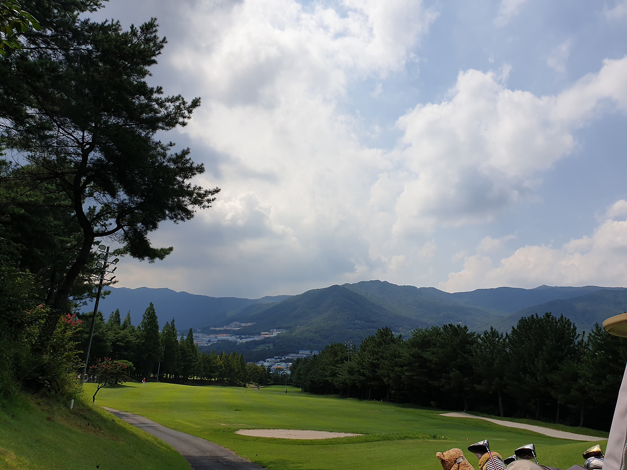 서코스 1번 홀 앞조가 이미 나가버려 뻥~ 뚫린 채 우리를 기다린다. 아, 하늘은 어찌 저리도 아름다울꼬. 더위만 아니라면 실로 여름은 골프 천국. 몸 휙휙 잘 돌아가~ 잔디 무성해. 하늘은 둥글둥글 뭉게구름이 온통 활개를 치고 있다.