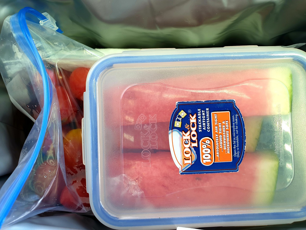 언제나처럼 우리 문정이, 맛있는 수제 고급 쿠키를 만들어와 나누고 언니~ 언니~ 아직 안 돼. 입술도 발라야 하고 콤팩트도 해야 하고 촬영 준비가 덜 되었어~ 하는 정숙, 아예 커다란 아이스팩 가방째로 안기니 그 안에는 운동 중 열었을 때 감동 그 자체였던 시원한 수박과 방울토마토가 가득이다. 난 딱 2 조니까 들고 올 수 있었어요. 그 말에 맞게 은향은 자기 팔뚝만 한 거대한 바나나를 가져왔으니 그것만으로도 너무 무거워 만약 4조였다면 가져올 엄두도 못 냈으리라. 딱 점심시간이 티 오프라 점심을 먹기도 안 먹기도 아주 애매한 시간. 이런 먹거리들로 허기진 배를 채운다.