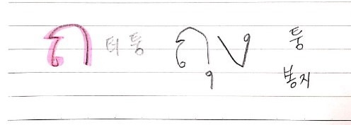 롵의 초자음은 러르어. 파란색 맨 밑에 있는 저 자음이다. 러르어의 르어는 배라는 뜻이다. 그럼 롵이 되기 위한 그다음을 볼까?