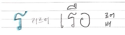 여약 저 자음이다. 파란색 맨 밑에 있는 것. 여약의 약은 도깨비라는 뜻이다. 요것은 장모음 아와 합쳐져 아이라고 발음하게 된다. 그러니까 뻐쁠라 + 마이토 + 싸라아 + 여약 = 빠이 (2성 falling tone)가 되는 것이다. 그럼 이제 빠이롵메 중에서 빠이까지 되었고 그다음 롵을 보자.