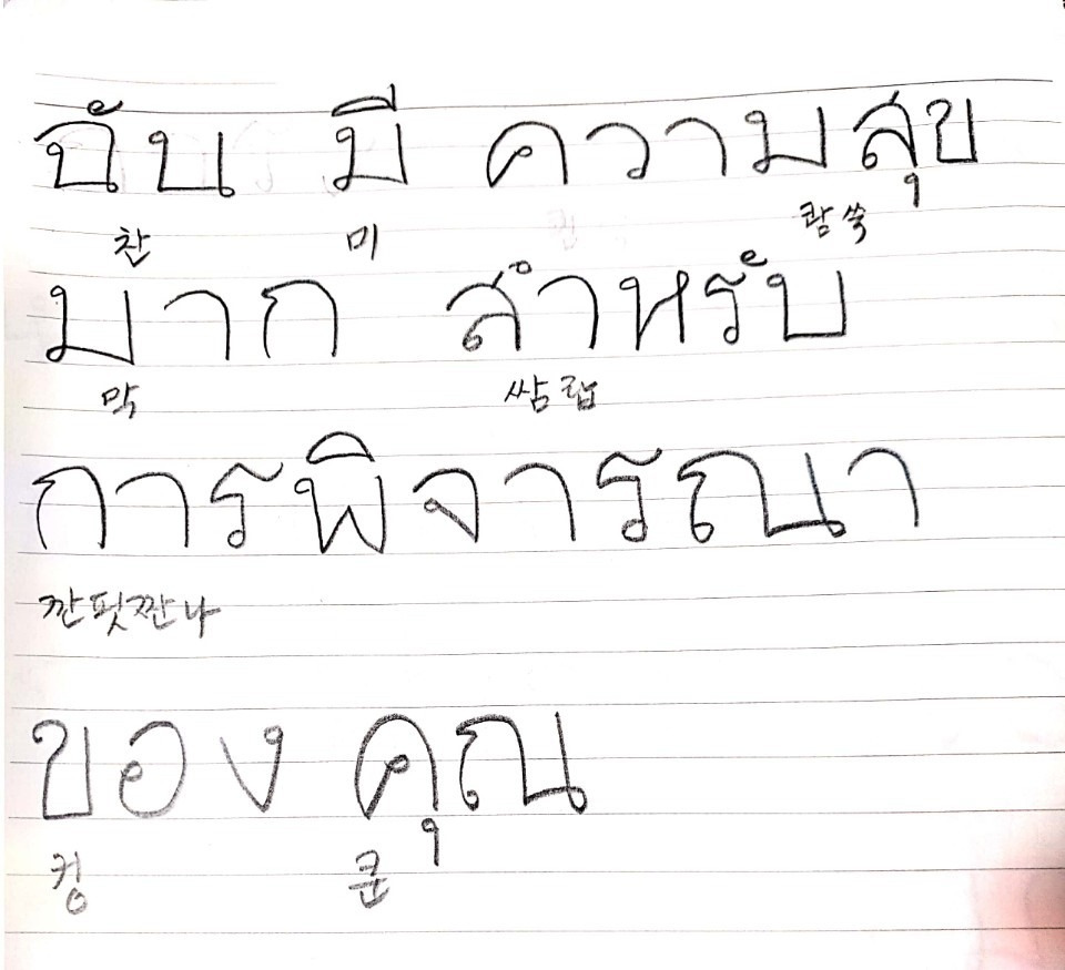 브런치 친구 '내가 꿈꾸는 그곳'님은 요즘 항상 태국어로 답하신다. 하하 그래서 난 그걸 갈가리 분해하며 외우고 익힌다. 요렇게 하하.