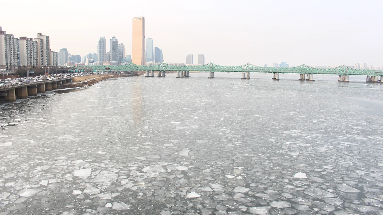 20160130 한강물이 얼었던 날. 요즘은 너무 더워서 얼음 얼었던 한강이 그립다.