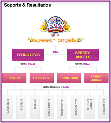 이어진 비보이 챔피언쉽 토너먼트 대진표와 함께 DJ의 디징으로 시작되었다.